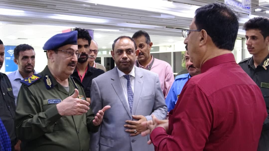 تفقد رئيس مصلحة الهجرة والجوازات والجنسية، اللواء الركن محمد الرملي، اليوم، سير العمل في إدارة الجوازات ومشروع التأشيرة الإلكترونية في مطار عدن الدولي، وآلية تنفيذ النظام الحديث