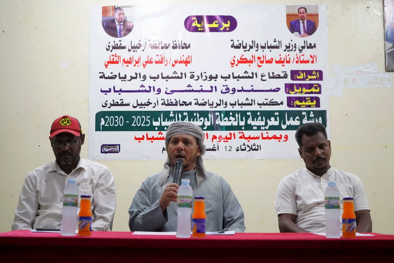 نظم مكتب الشباب والرياضة بمحافظة أرخبيل سقطرى، اليوم، الورشة التعريفية بالخطة الوطنية للشباب 2025–2030، وذلك تزامناً مع الاحتفاء باليوم العالمي للشباب.