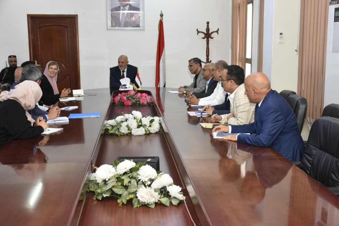 بحث محافظ محافظة تعز، نبيل شمسان، اليوم، مع وفدين من الوكالة السويسرية للتنمية، ومنظمة الأمم المتحدة للطفولة “اليونيسيف”، أوجه التنسيق المشترك لدعم المشاريع التنموية والإنسانية في المحافظة.
