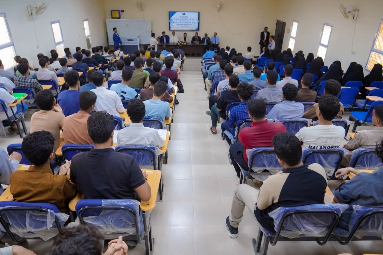 كما ألقى رئيس الجامعة كلمة توجيهية للطلاب الجدد، دعاهم فيها إلى الجد والاجتهاد والالتزام بالقيم الجامعية، مشيرًا إلى أن المرحلة الجامعية تشكّل اللبنة الأولى لصناعة قادة المستقبل والمساهمين الفاعلين في تنمية المحافظة والوطن.