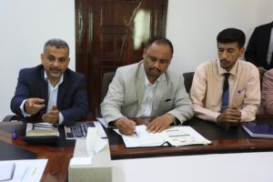 حضر التوقيع وكيل حضرموت للشؤون الاجتماعية والمالية الدكتور أحمد باصريح، وعدد من المسؤولين بالسلطة المحلية والمؤسسة.