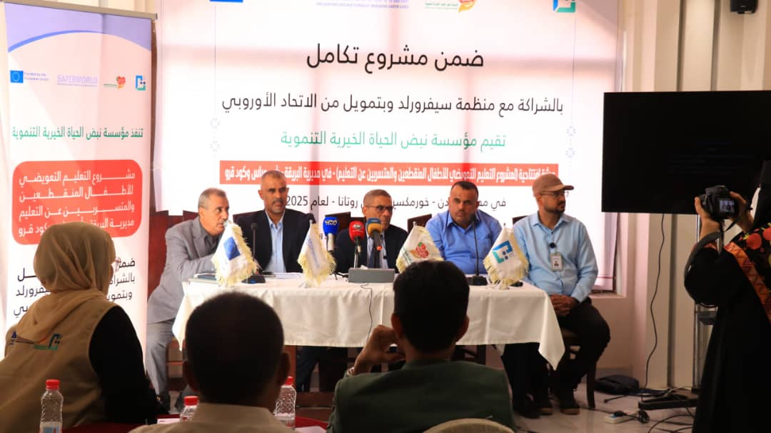 في حين استعرض الرئيس التنفيذي لمؤسسة نبض الحياة، الدكتورة سارة اليافعي، وضابط المشروع في منظمة سيفرورلد، أكرم عادل، أبرز أهداف المشروع الذي سينفذ خلال الفترة من أغسطس 2025 وحتى يناير 2026 ضمن مرحلته الرابعة..موضحين أنه يتضمن تدريب 20 معلماً ومعلمة على استراتيجيات التعليم النشط والمهارات الحياتية، و تقديم برنامج تعليم تعويضي لـ 50 طفلاً وطفلة، مع متابعة تنفيذ مخرجات المشروع.