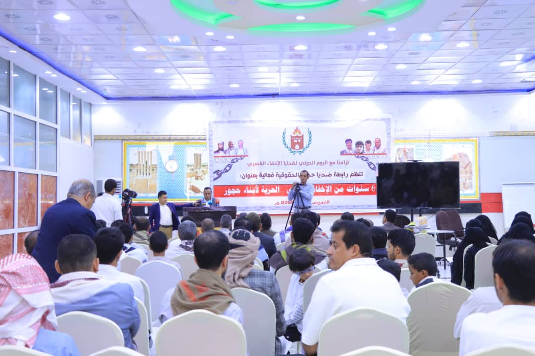 شهدت مدينة مأرب، فعالية حقوقية حاشدة بالتزامن مع اليوم الدولي لضحايا الاختفاء القسري، نظمتها رابطة ضحايا حجور بمشاركة 25 منظمة حقوقية ومكاتب حقوق الإنسان وأهالي المختطفين، للمطالبة بالكشف عن مصير أبناء حجور بمحافظة حجة، الذين اختفتهم ميليشيا الحوثي منذ ست سنوات.