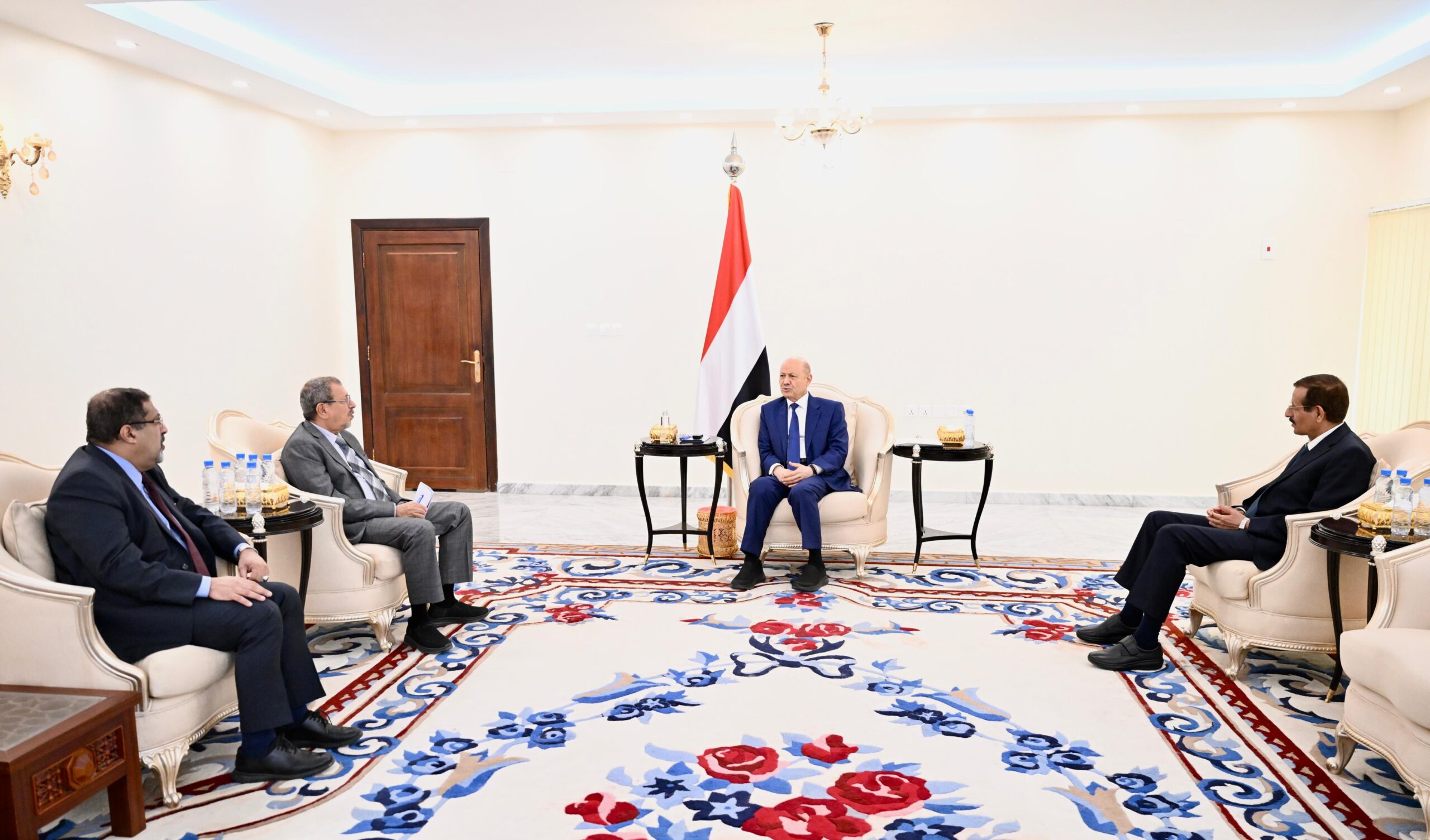 التقى فخامة الرئيس الدكتور رشاد محمد العليمي، رئيس مجلس القيادة الرئاسي اليوم الخميس، بقصر معاشيق رئيس مجلس القضاء الاعلى القاضي محسن يحيى طالب، ورئيس المحكمة العليا القاضي الدكتور علي الاعوش، بحضور وزير العدل القاضي بدر العارضة.