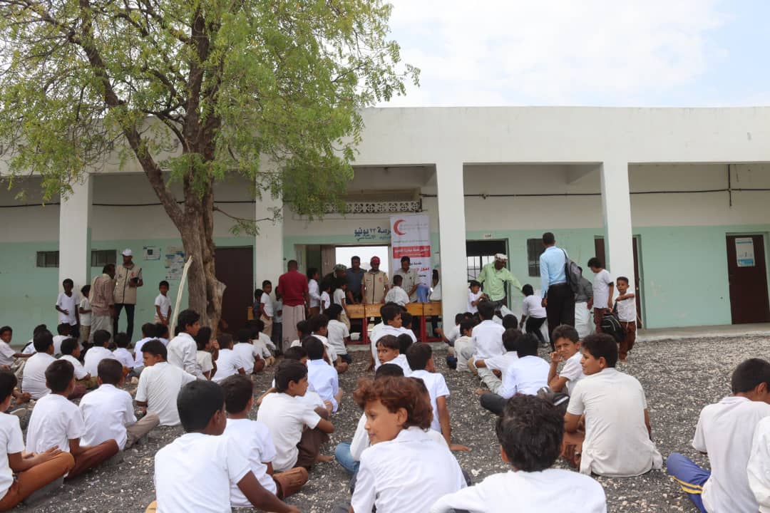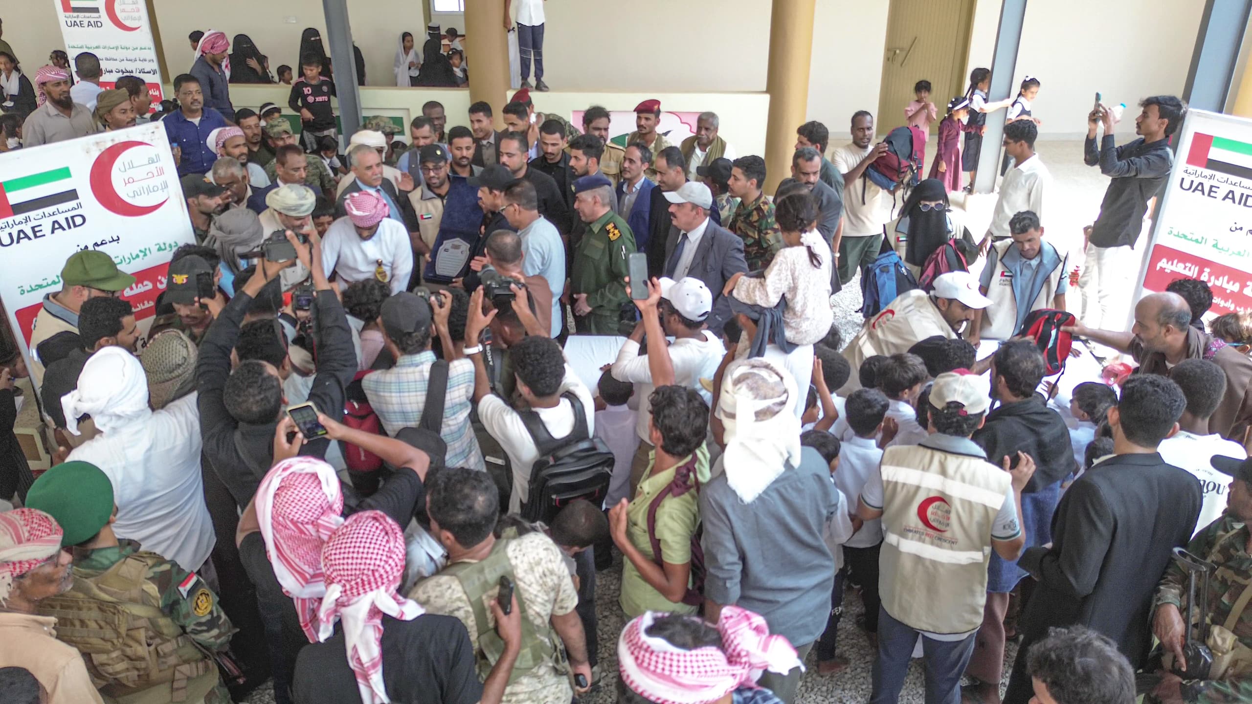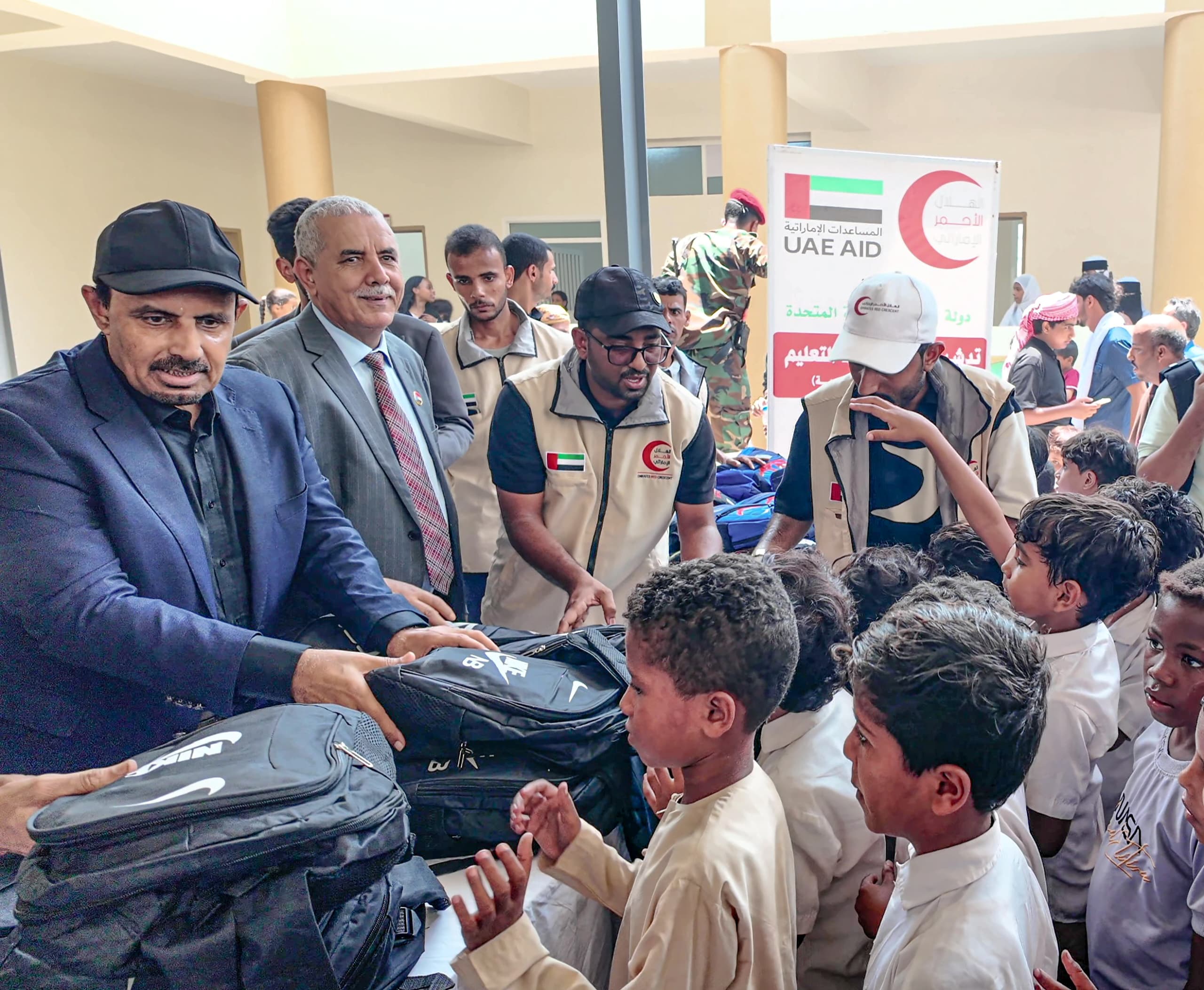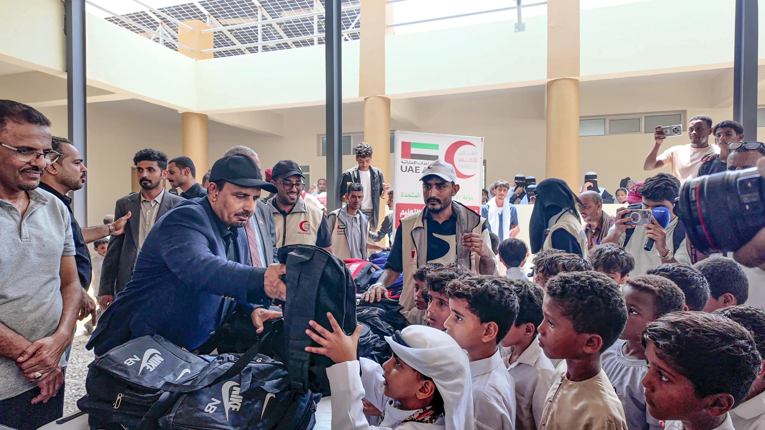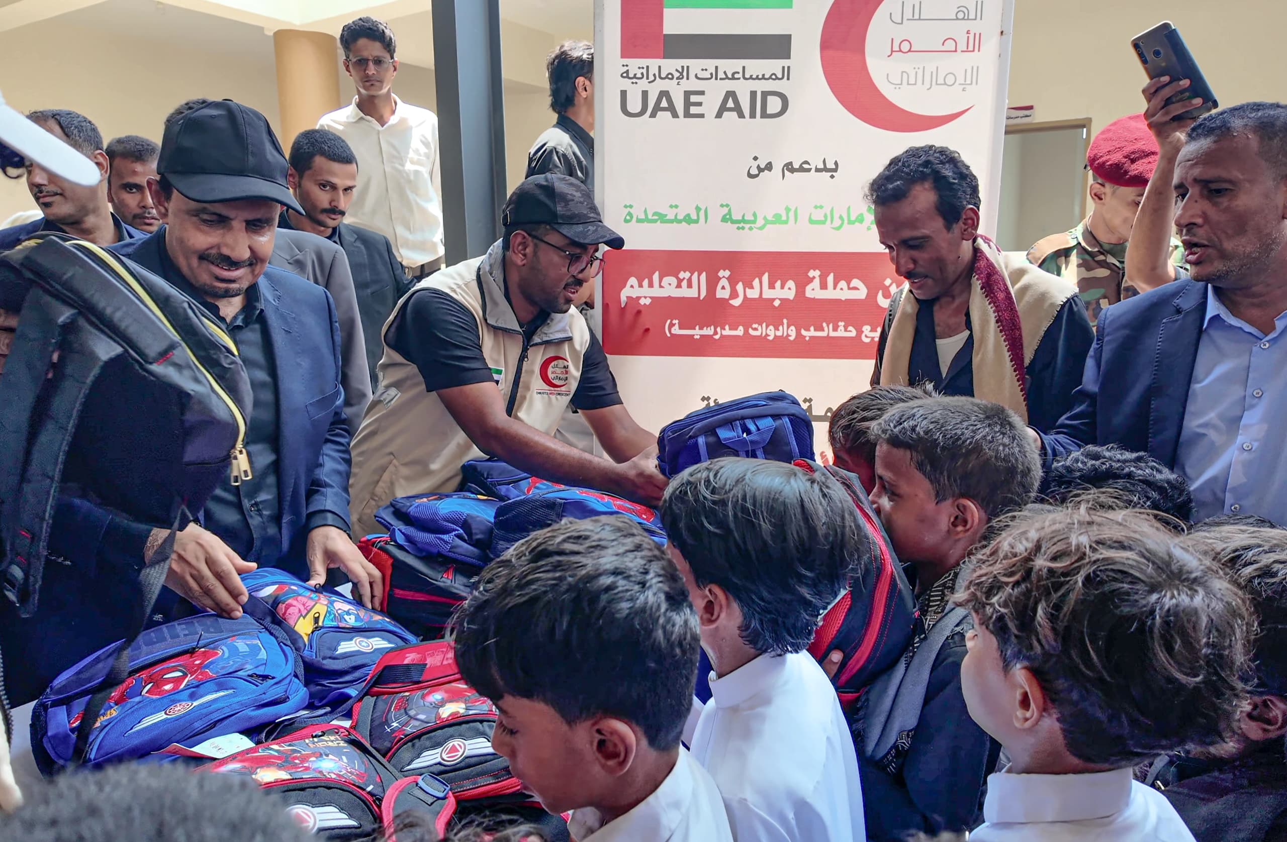 وعقب الافتتاح، تم تدشين مبادرة التعليم عبر توزيع حقائب وأدوات مدرسية مقدمة من هيئة الهلال الأحمر الإماراتي للطلاب المستفيدين, شملت توزيع