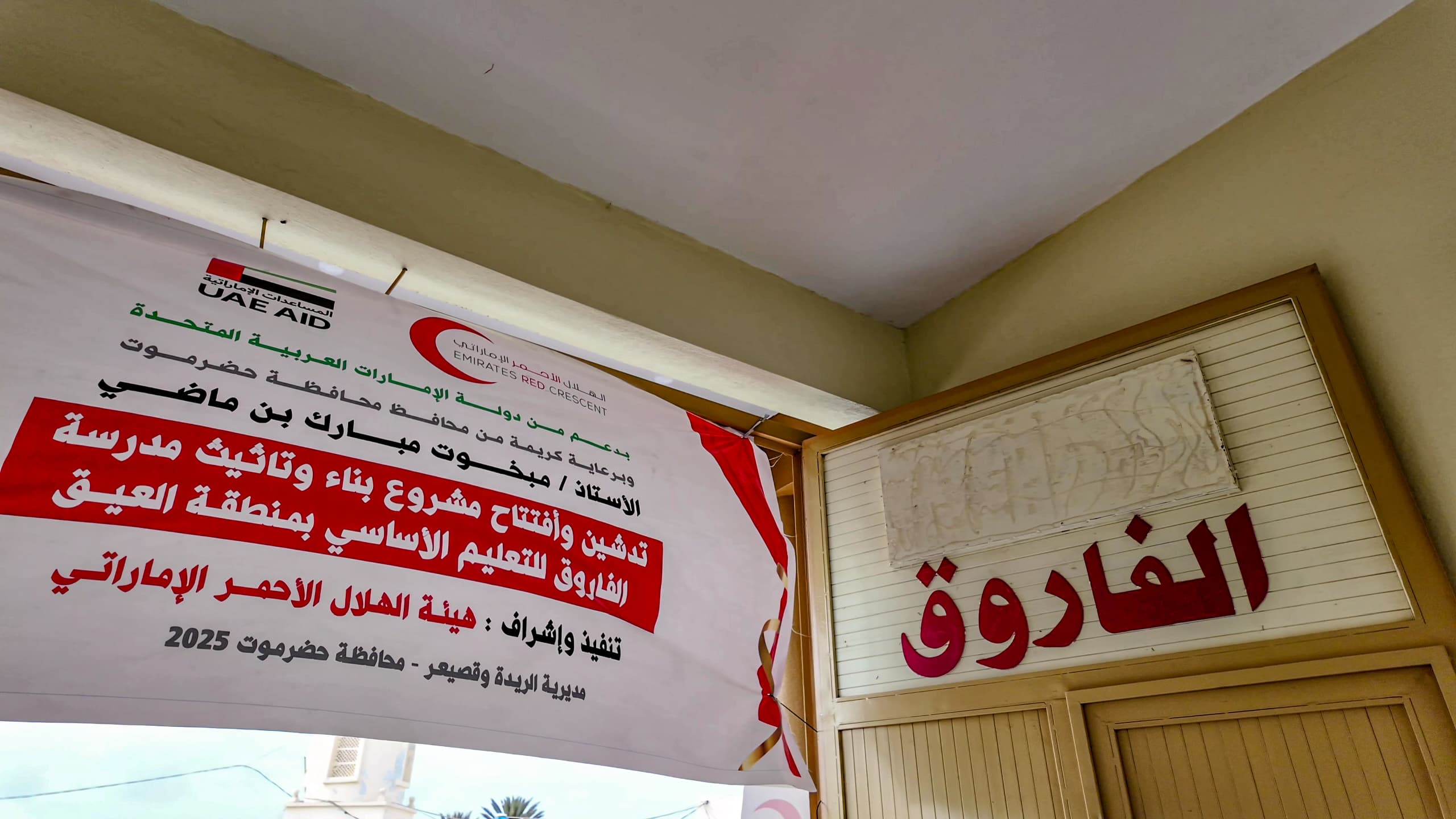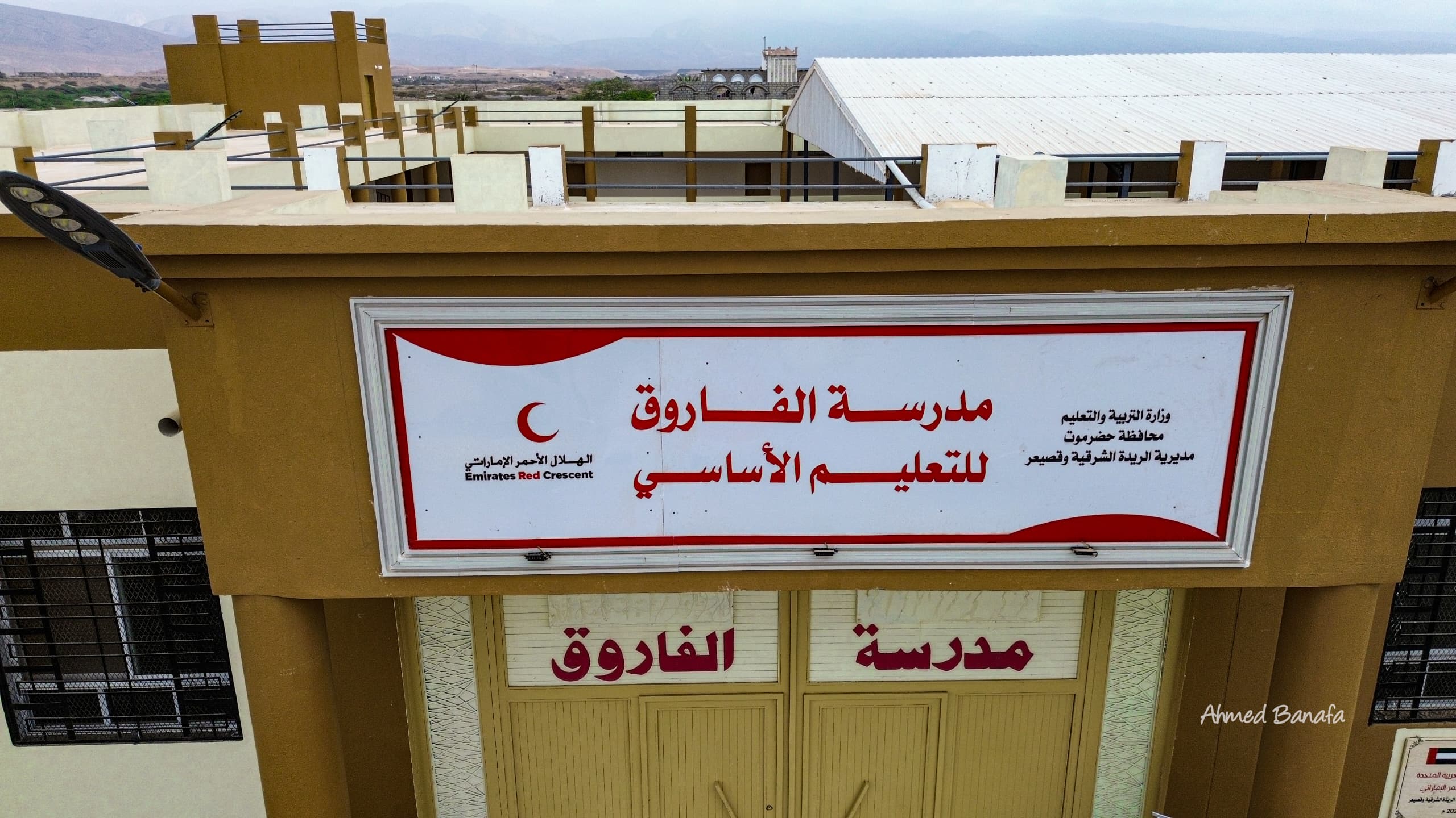 بتمويل من دولة الإمارات العربية المتحدة، افتتحت هيئة الهلال الأحمر الإماراتي اليوم مدرسة الفاروق للتعليم الأساسي بمنطقة العيق بمديرية الريدة وقصيعر، وذلك بحضور محافظ حضرموت الأستاذ مبخوت مبارك بن ماضي، وعضو هيئة رئاسة المجلس الانتقالي الجنوبي الأستاذ يحيى غالب الشعيبي، والأمين العام للمجلس المحلي بالمحافظة الأستاذ صالح عبود العمقي، وبإشراف مباشر من هيئة الهلال الأحمر الإماراتي.
