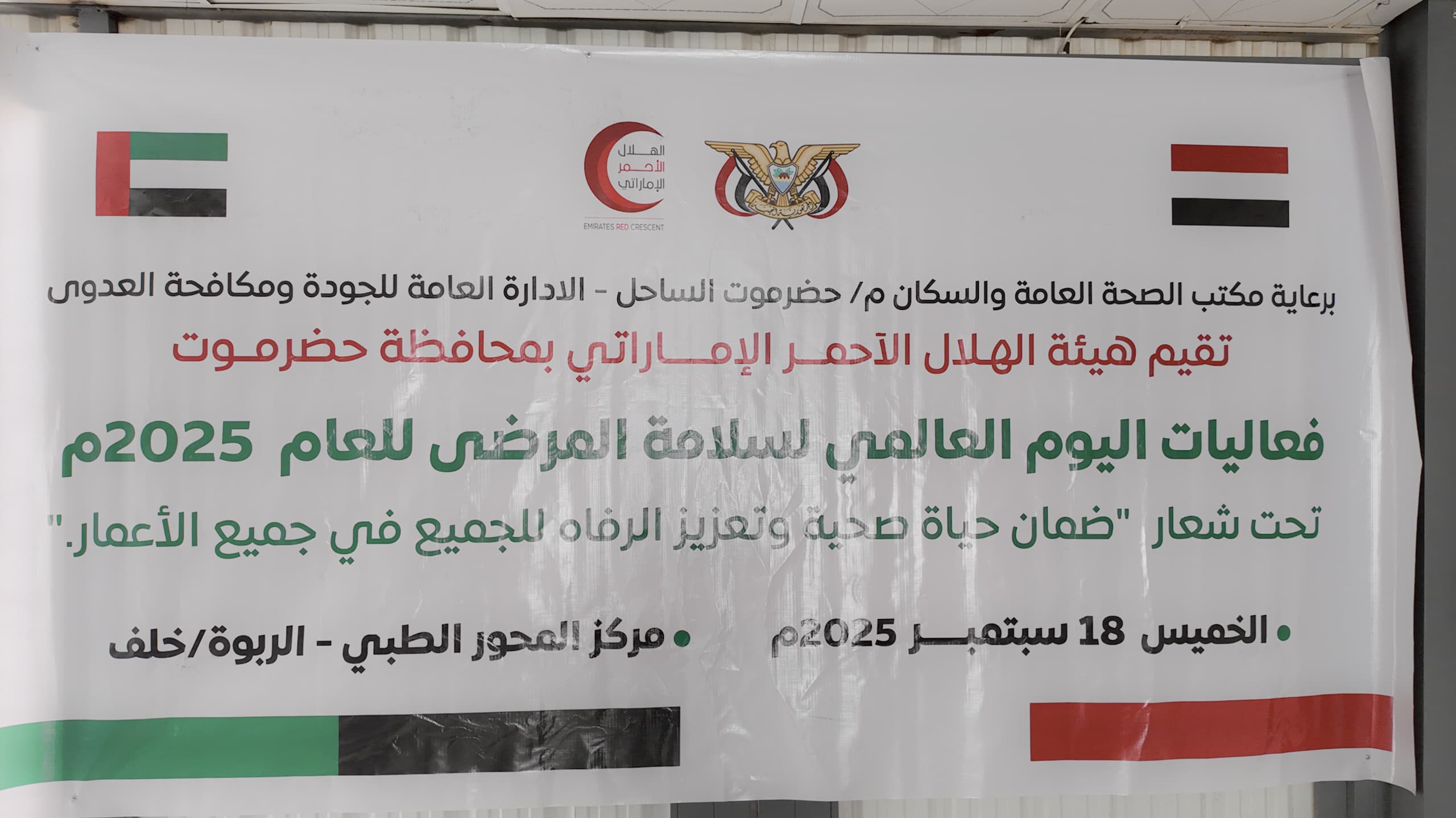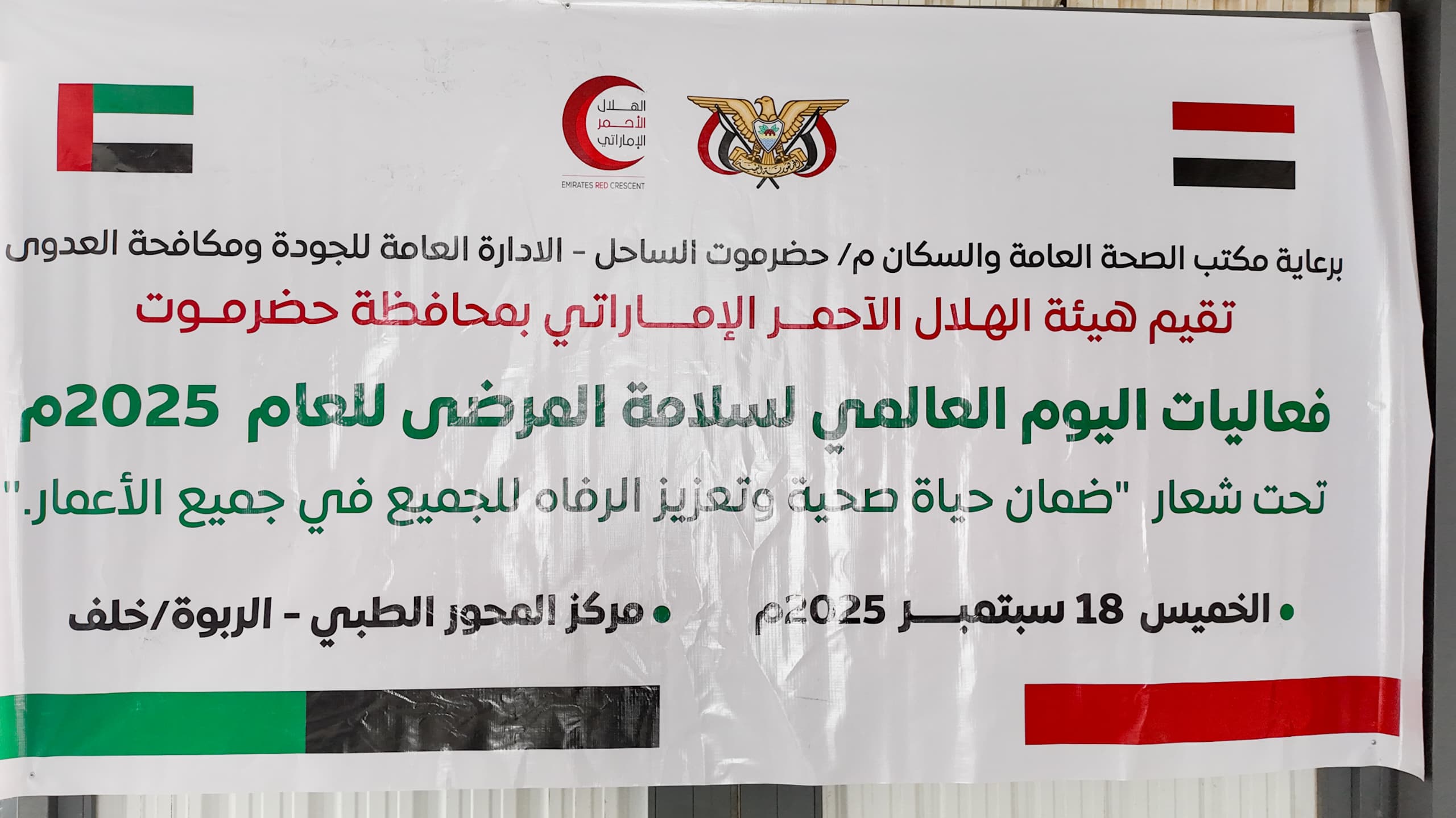 برعاية مكتب وزارة الصحة والسكان بساحل حضرموت، نظم مركز المحور الطبي بربوة خلف بمدينة المكلا التابع لهيئة الهلال الأحمر الإماراتي، يوم أمس، فعالية توعوية وتثقيفية بمناسبة اليوم العالمي لسلامة المرضى 2025م، بحضور عدد من الأمهات والأطفال إلى جانب الكوادر الصحية.