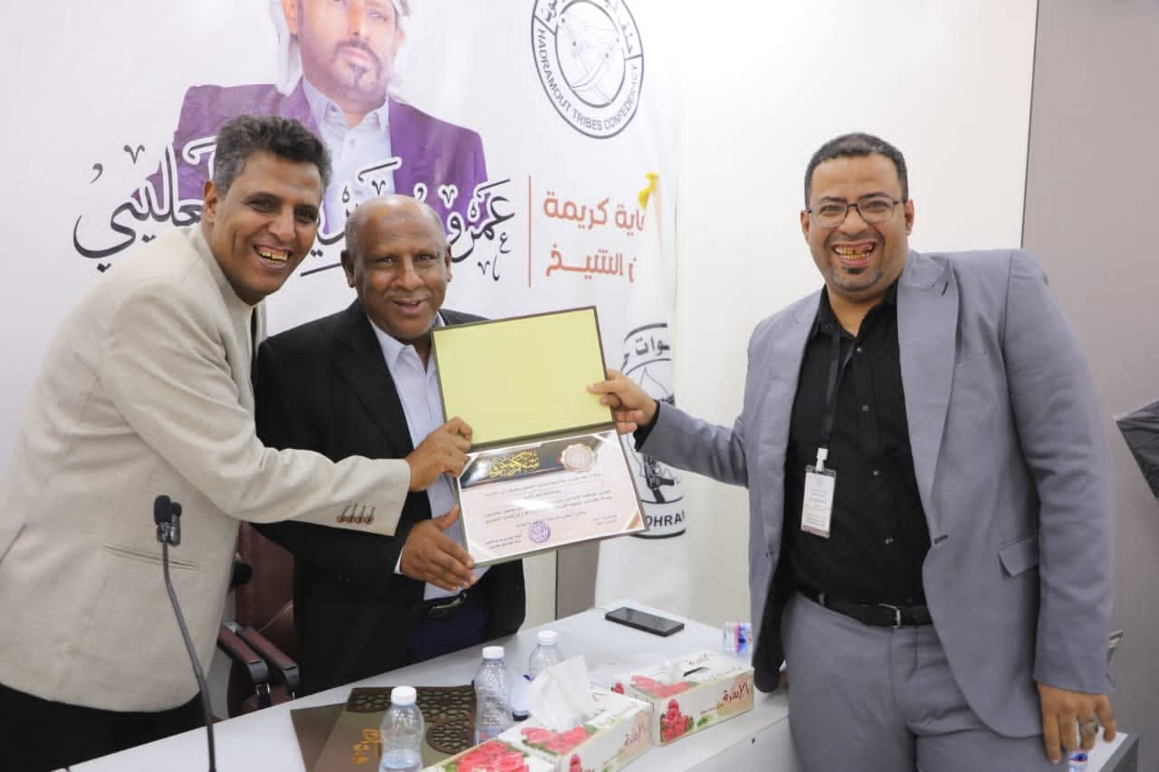 انعقد اليوم في مدينة العليب بهضبة حضرموت اللقاء السنوي التشاوري للإعلاميين الحضارم ونشطاء مواقع التواصل الاجتماعي، الذي نظمته دائرة الإعلام والعلاقات بحلف قبائل حضرموت، تحت شعار: «الحكم الذاتي خيارنا.. معًا لسيادة حضرموت وعدالتها الانتقالية وانتزاع حقوق أبنائها السياسية والاقتصادية والعسكرية»، وذلك برعاية وحضور الشيخ عمرو بن حبريش العليي، رئيس حلف قبائل حضرموت، رئيس مؤتمر حضرموت الجامع، وكيل أول محافظة حضرموت.
