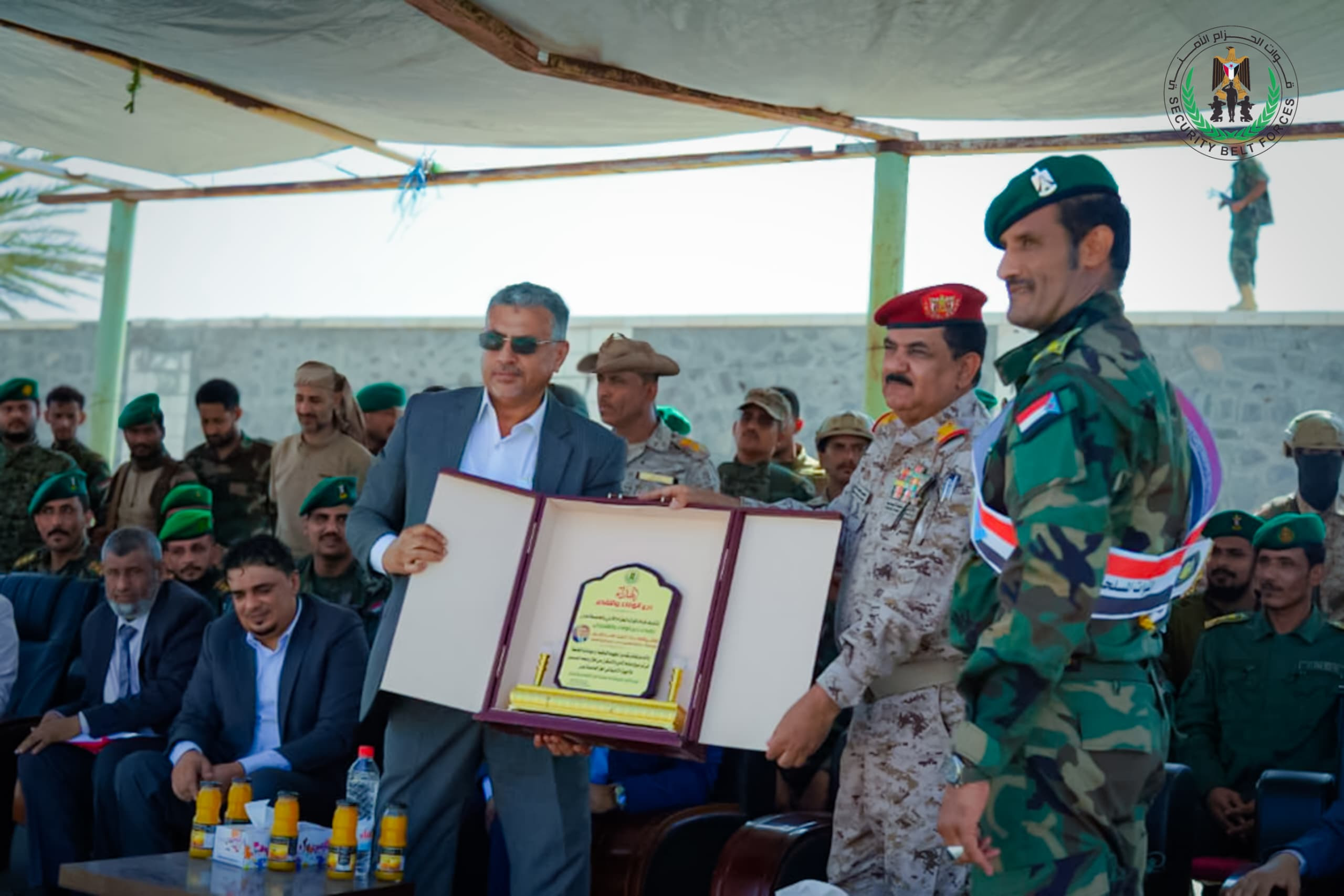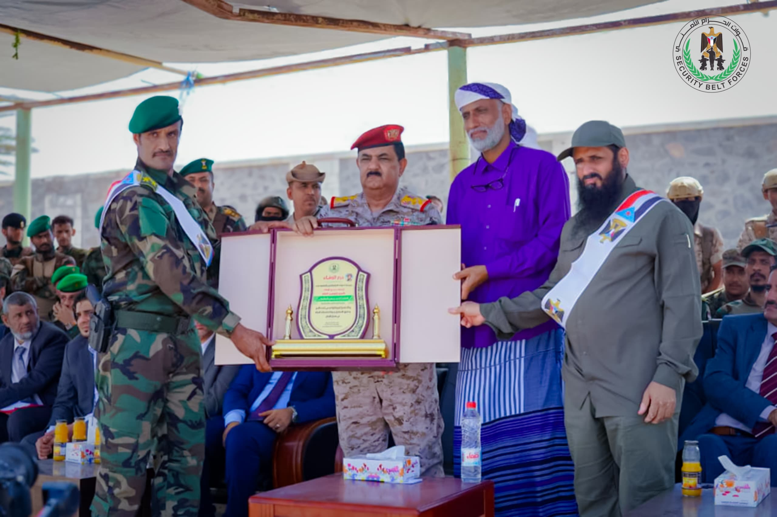 وفي ختام الحفل، كرّمت قوات الحزام الأمني معالي وزير الدفاع الفريق الركن الدكتور محسن الداعري بدرع الحزام الأمني من الدرجة الأولى، تقديرا لجهوده المبذولة في التأهيل من خلال قبول العديد من الضباط في الكلية الحربية، كما جرى تكريم أسرة الشهيد القائد أحمد محسن السليماني، وكذا تكريم وزير الدولة، محافظ العاصمة عدن، الأستاذ أحمد حامد لملس، ومدير أمن العاصمة عدن، اللواء الركن مطهر الشعيبي.