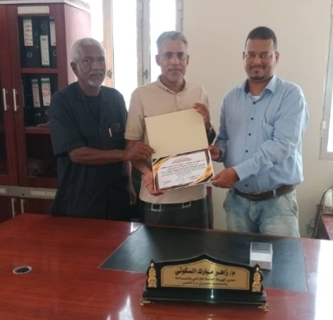 وفي اللقاء تم تكريم الشخصية القيادية الذي يحظى بكل تقدير المهندس/ زاهر مبارك السكوتي ، مدير الهيئة العامة للأراضي والمساحة والتخطيط العمراني بمديرية الشحر ، بشهادة شكر وتقدير ، وذلك لما يقدمه من جهود ومقابلة المواطنين والبت بمعالجة بعض الاشكاليات التي قد تواجههم ، وختام اللقاء ثمن منتدى أصدقاء الإعلاميين والصحفيين عمل فرع الهيئة بمديرية الشحر ، متمنين لهم دوام التوفيق والارتقاء بمستوى الأداء لخدمة المواطنين والوطن.