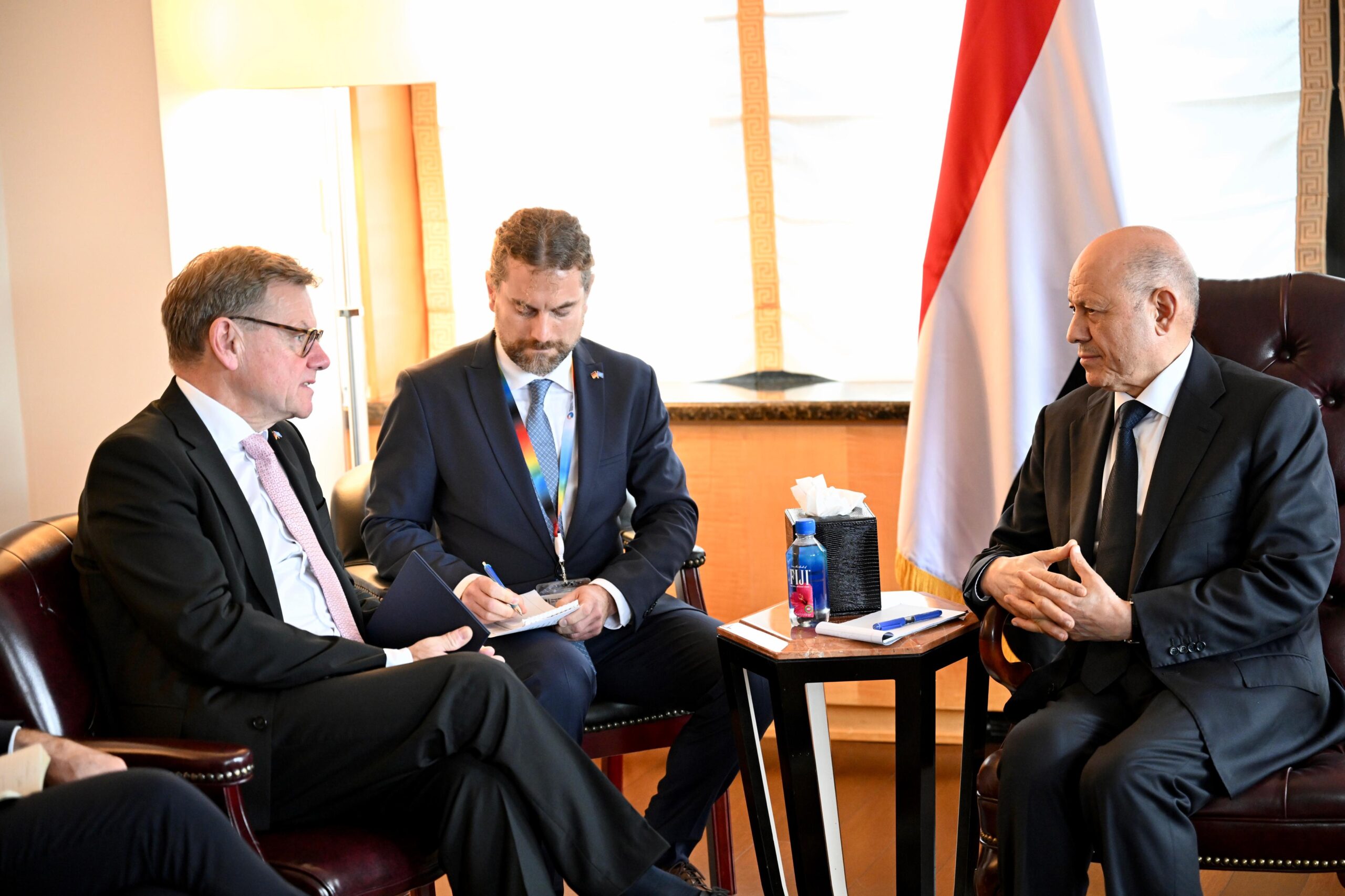 وفي اللقاء اشاد رئيس مجلس القيادة الرئاسي بموقف جمهورية المانيا الاتحادية الى جانب الشعب اليمني، وقيادته السياسية، معربا عن تطلعه الى مضاعفة التدخلات الاقتصادية والانمائية، والانسانية، لتحسين موقف العملة الوطنية والاوضاع المعيشية والخدمات الاساسية، واستكمال جهود الاصلاحات الشاملة.