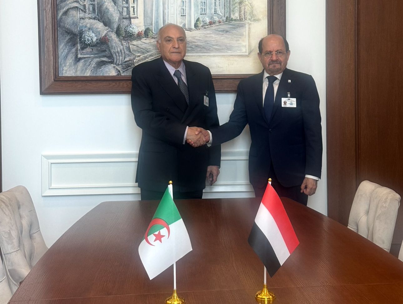 بحث وزير الخارجية وشؤون المغتربين، الدكتور شائع الزنداني، اليوم، مع وزير الشؤون الخارجية والجالية الوطنية بالخارج والشؤون الإفريقية الجزائري، أحمد عطاف، أوجه التعاون الثنائي، وسبل تطويره في جميع المجالات، بما يسهم في خدمة المصالح المشتركة للشعبين الشقيقين.