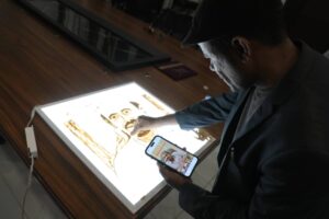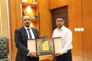 واعطى هبشان لسيادة المحافظ لمحة عن مشاركاته المختلفة في مجالات النحت والرسم بالرمل على الزجاج، وآخرها مشاركته في فعاليات البيئة الحضرية والزراعية لعام 2025 “مهرجان عودة الماضي” المُقامة مؤخرًا بسلطنة عُمان الشقيقة.