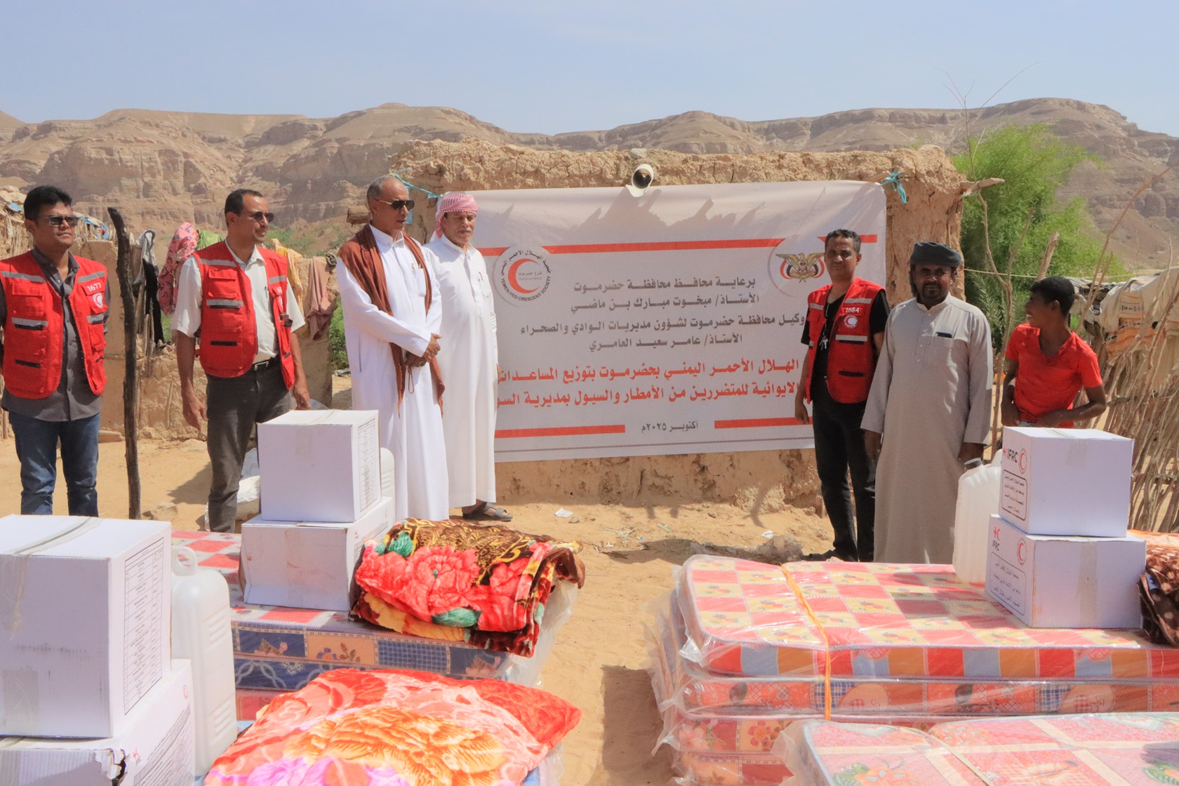 قدمت جمعية الهلال الأحمر اليمني فرع حضرموت اليوم الاحد الموافق 5 أكتوبر 2025م، مساعدات ايوائية لعدد 163 أسرة نازحة بمديرية السوم المتضررة من الامطار والسيول التي شهدها وادي حضرموت خلال شهر أغسطس الماضي، في مناطق مخيمات النازحين القادمين من مسيلة الاحرار وعدد من المناطق الداخلية وشملت الاسر النازحة المتضررة في مخيمات { حد نت، الشلهمات، ثرب المقيطوع، الحالة، مشيحوكة، عبيد الشحرة }، برعاية محافظ محافظة حضرموت الأستاذ مبخوت مبارك بن ماضي ووكيل المحافظة لشئون مديريات الوادي والصحراء الأستاذ عامر سعيد العامري وبالتنسيق مع رئيس لجنة حصر اضرار السيول بحضرموت الوادي والصحراء المهندس هشام محمد السعيدي.