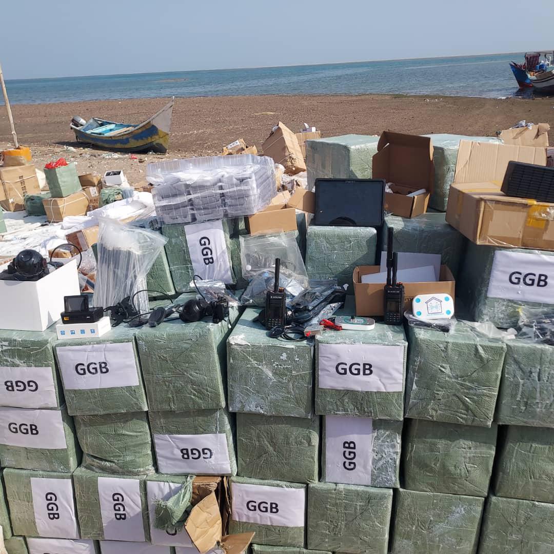 وتتكون الشحنة التي يحملها قارب التهريب الحوثي من العديد من المعدات والمواد الحساسة الخاصة بالطيران المسيّر، تضمنت كاميرات عالية الدقة مخصصة للطيران المسيّر لأغراض الاستطلاع والتصوير الجوي الليلي والنهاري، وأجهزة الاتصال اللاسلكي وأدوات التحكم عن بُعد والرقائق الإلكترونية أجهزة تتبع (GPS Trackers)، وبطاقات نظام تحديد المواقع العالمي (GPS)، ووحدات تحكم إلكترونية (Flight Controllers)، وأنظمة ملاحية متكاملة للطائرات المسيرة، وبطاريات طاقة عالية السعة، ومحولات كهربائية دقيقة، وقطع إلكترونية، ومكونات ميكانيكية، وألياف الكاربون، التي تدخل ضمن أنظمة التشغيل والتوجيه والتصنيع للطيران المسيّر.