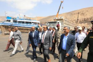 كما وجّه المحافظ بضرورة رفع كفاءة الكوادر العاملة بالميناء، ومتابعة مشروع خط النقل البحري عبر الصين.