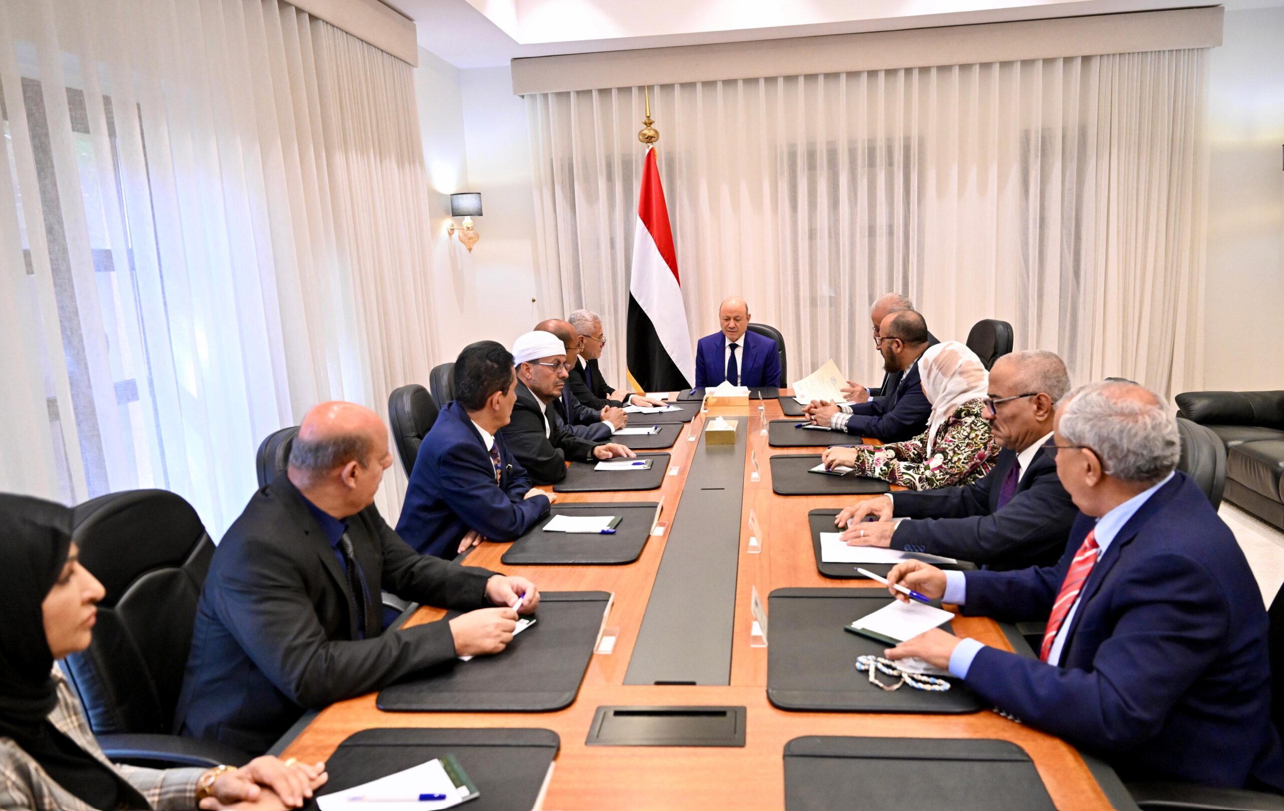 التقى فخامة الرئيس الدكتور رشاد محمد العليمي، رئيس مجلس القيادة الرئاسي، اليوم السبت، الفريق القانوني المساند للمجلس، برئاسة القاضي حمود الهتار.