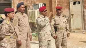 وكان في إستقبال اللواء التميمي قائد معسكر القيعان العقيد صادق العامري ورئيس عمليات المعسكر النقيب حسين سعيد بن شيبان وركن الإستطلاع ملازم أول صالح سليم المنهالي وعدد من ضباط المعسكر.