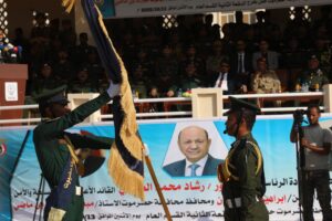 ففي مشهد عسكري مُهيب وعروض جسّدت الانضباط والجاهزية القتالية، جاء هذا الاحتفال البهيج، الذي يمثل رافدًا نوعيًا للمؤسسة الأمنية، ضمن احتفالات بلادنا بأعياد الثورة، والذكرى الـ(62) لثورة 14 أكتوبر المجيدة، برعاية كريمة من فخامة الرئيس الدكتور رشاد محمد العليمي، رئيس مجلس القيادة الرئاسي، القائد الأعلى للقوات المسلحة.