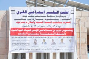 من جانبه أوضح مدير مكتب الصحة الأستاذ سالم الغرابي أن المخيم يهدف إلى تقديم الخدمات الطبية المجانية وإجراء العمليات الجراحية في عدد من التخصصات أبرزها الجراحة العامة و الأوعية الدموية و الباطني والجهاز الهضمي و كذا العظام والتخدير والعناية المركزة.