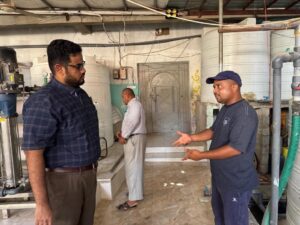 بتوجيهات من محافظ محافظة حضرموت الأستاذ مبخوت بن ماضي وبإشراف مباشر من الوكيل المالي والإداري الدكتور أحمد باصريح بمعية المهندس نائف بن شملان نائب مدير عام مكتب وزارة الأشغال العامة والطرق ووكيل نيابة الصناعة والتجارة بحضرموت القاضي ابوبكر فيصل باشطح والمهندس خالد الغريب نائب مدير عام المواصفات و المقاييس بالمحافظة و المهندس مروان العفاري مدير مكتب الأشغال العامة والطرق بمديرية المكلا والأستاذ أنور الموسطي مدير إدارة الإصحاح البيئي بساحل حضرموت ومندوب عن مدير عام البيئة المهندسة نجوى بازيدان إضافة إلى مندوبي المركز الوطني لمختبرات الصحة العامة المركزية بساحل حضرموت دشنت اللجان المختصة صباح يوم الأمس حملة ميدانية شاملة استهدفت معامل إنتاج وتحلية المياه بمدينة المكلا.