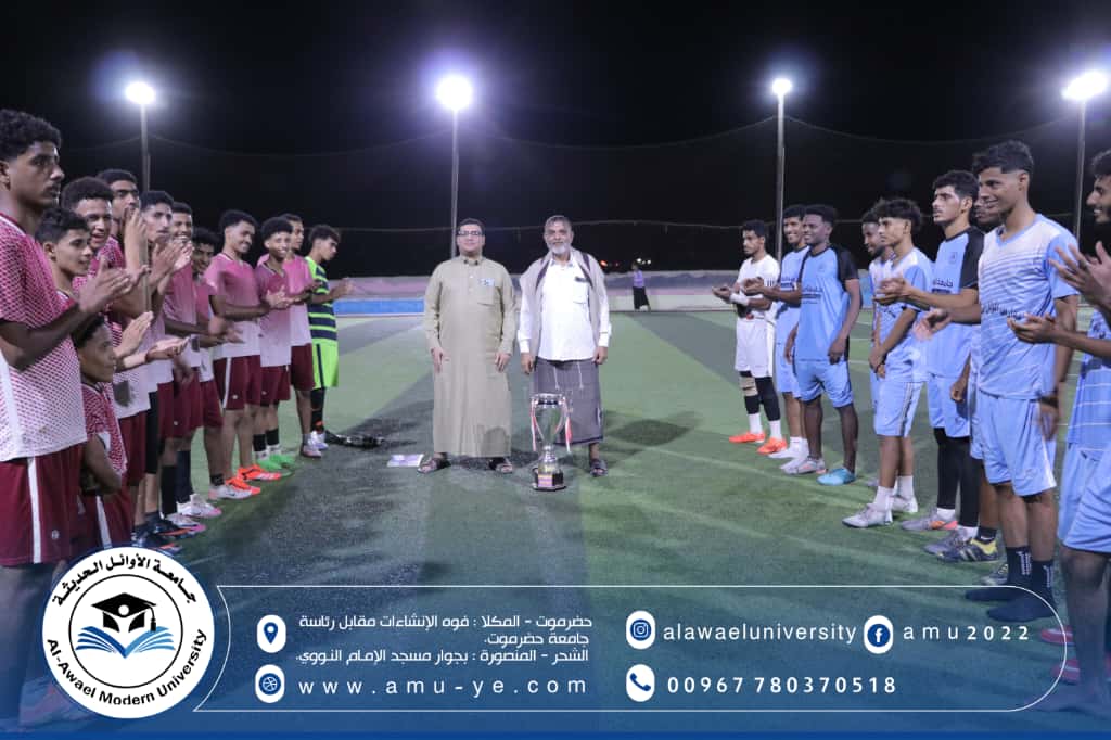 بتوجيهات وحضور معالي رئيس جامعة الأوائل الحديثة البروفيسور مبارك السباعي، ومتابعة وحضور الأمين العام للجامعة الأستاذ محمد القعيطي، اختتمت مساء اليوم فعاليات النسخة الثانية من بطولة كأس معالي البروفيسور أحمد بن علوي العطاس، رئيس مجلس أمناء الجامعة، والتي أُقيمت على ملاعب الأرضي المعشبة بمدينة الشحر، بين طلاب فوة وطلاب الشحر وسط أجواء مفعمة بالحماس والتفاعل الطلابي الكبير.