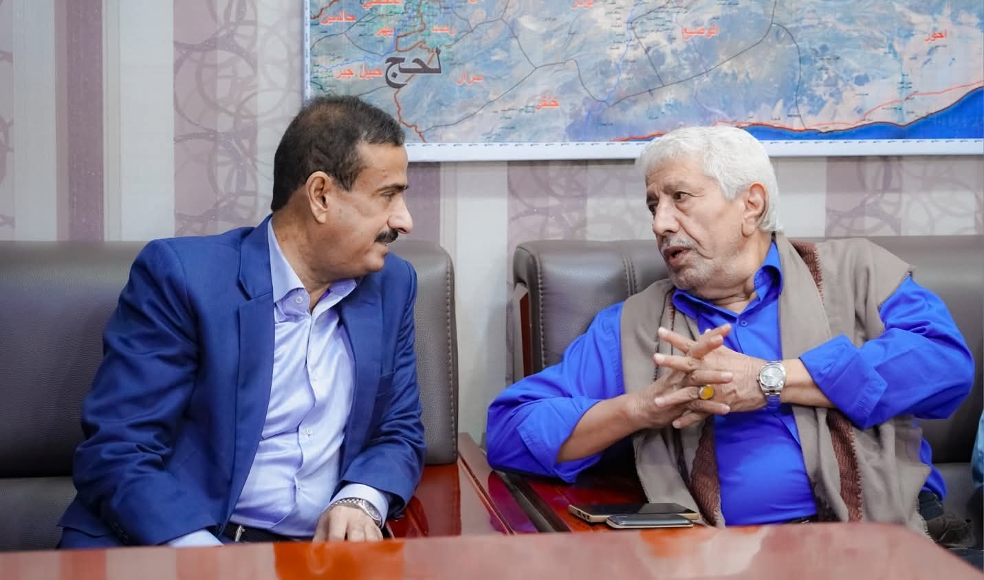 استقبل محافظ محافظة شبوة، رئيس المجلس المحلي، عوض محمد بن الوزير، في مكتبه بمدينة عتق، معالي وزير الصحة العامة والسكان السابق الدكتور ناصر محسن باعوم.