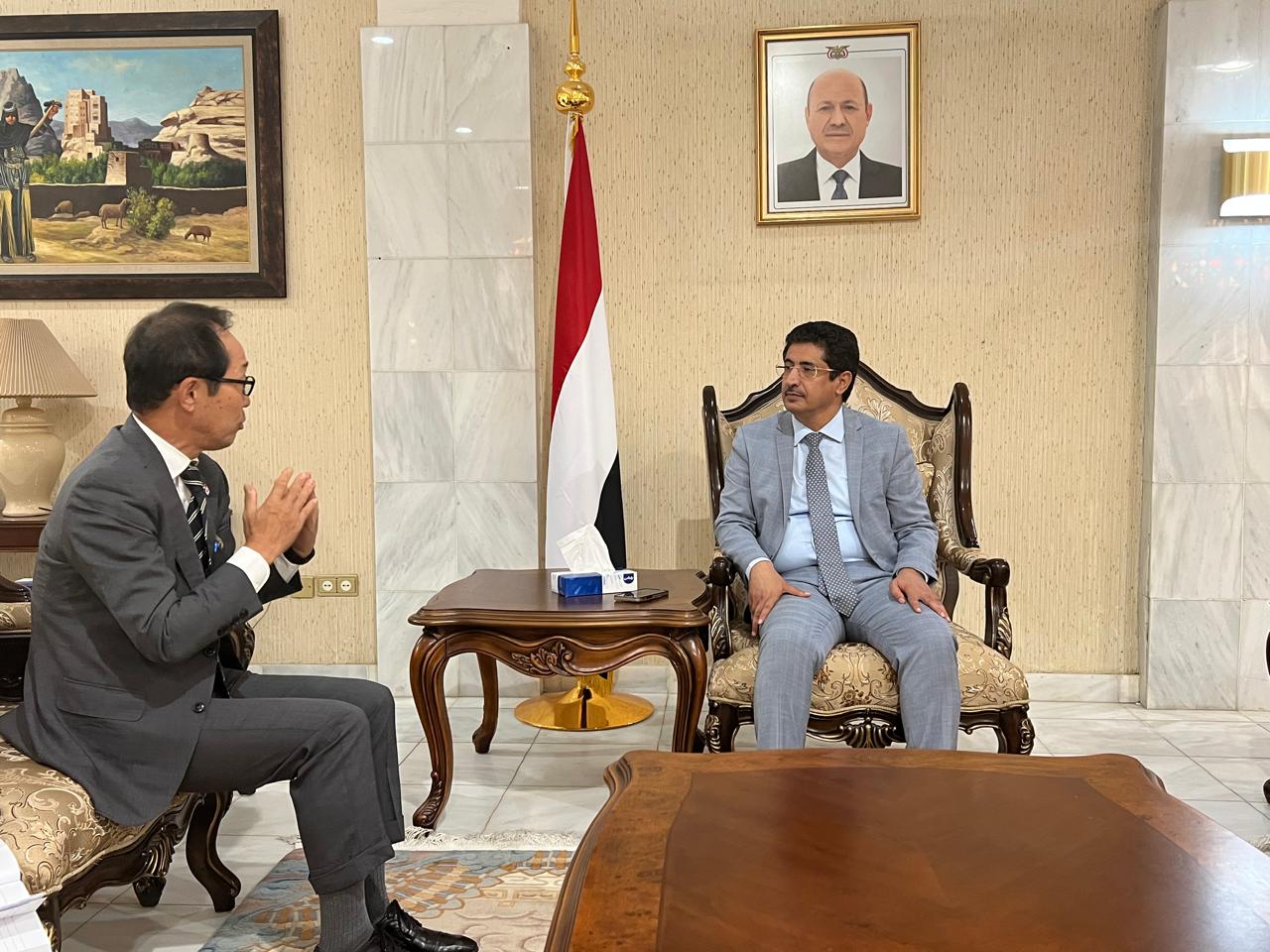 من جانبه، أكد السفير الياباني، استمرار دعم بلاده لجهود السلام في اليمن..مجدداً موقف اليابان الثابت والداعم لليمن، واستعدادها لتعزيز التعاون التنموي والإنساني والاقتصادي مع الحكومة اليمنية.