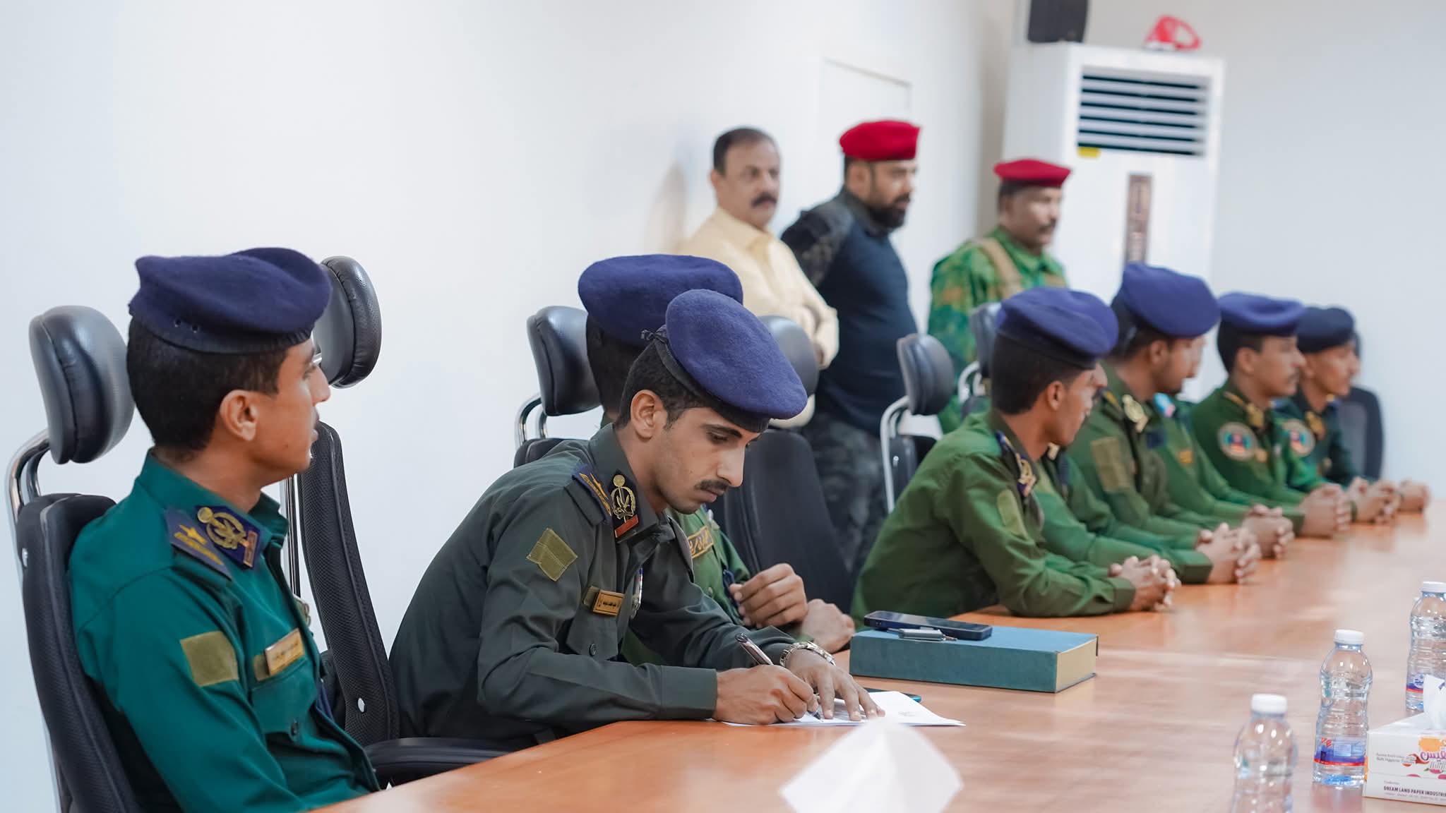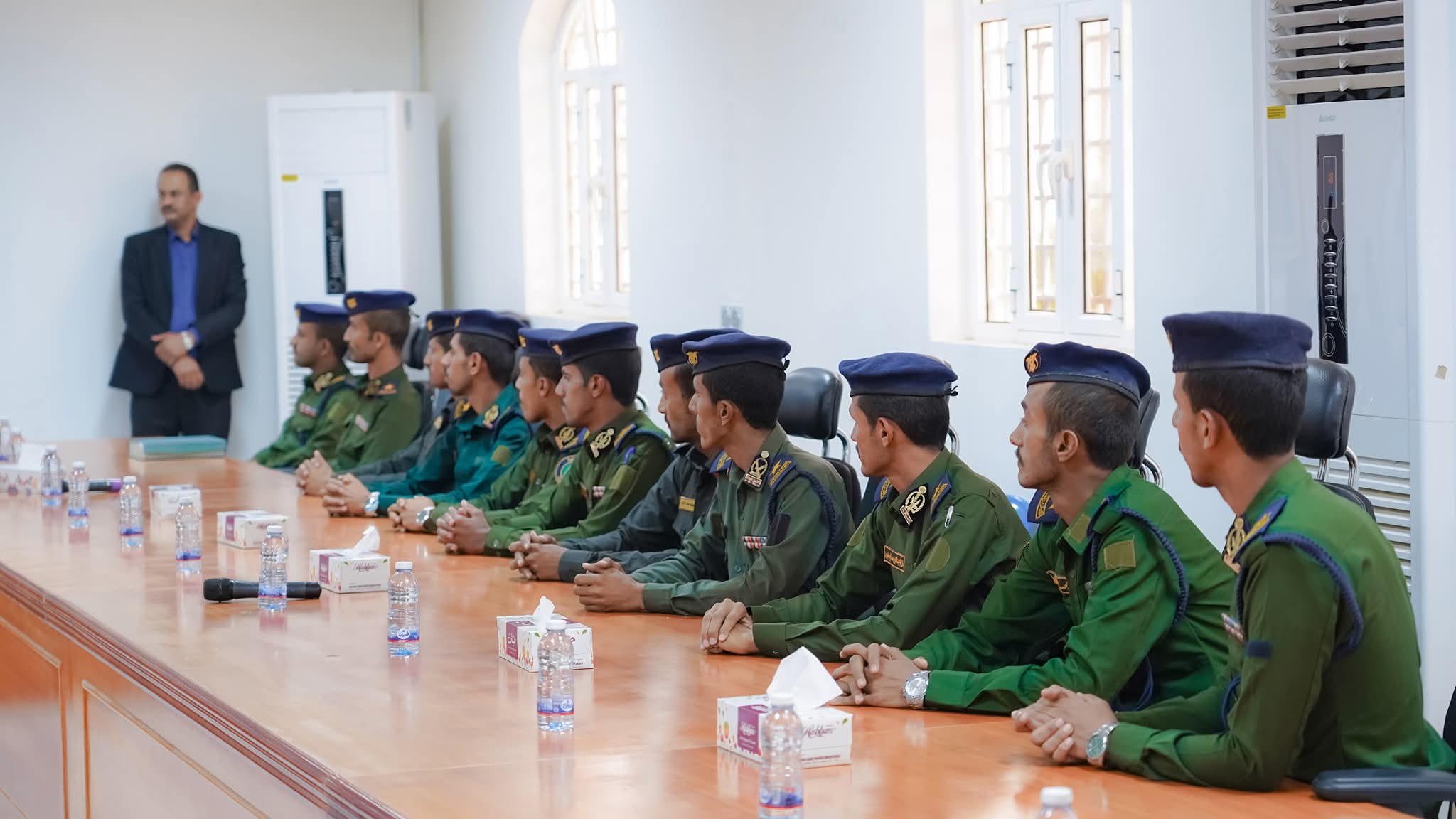 وخلال اللقاء، عبّر المحافظ بن الوزير عن اعتزازه بأبنائه الخريجين، مثمناً جهودهم خلال مسيرتهم التعليمية، ومؤكداً أن السلطة المحلية تولي الملف الأمني أولوية مطلقة باعتباره الأساس الراسخ لتحقيق التنمية والاستقرار، مشدداً على دعم الخريجين وترتيب أوضاعهم الميدانية بما يمكّنهم من أداء مهامهم بكفاءة واقتدار.