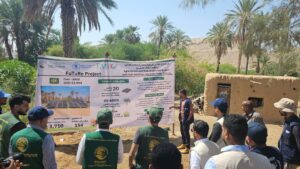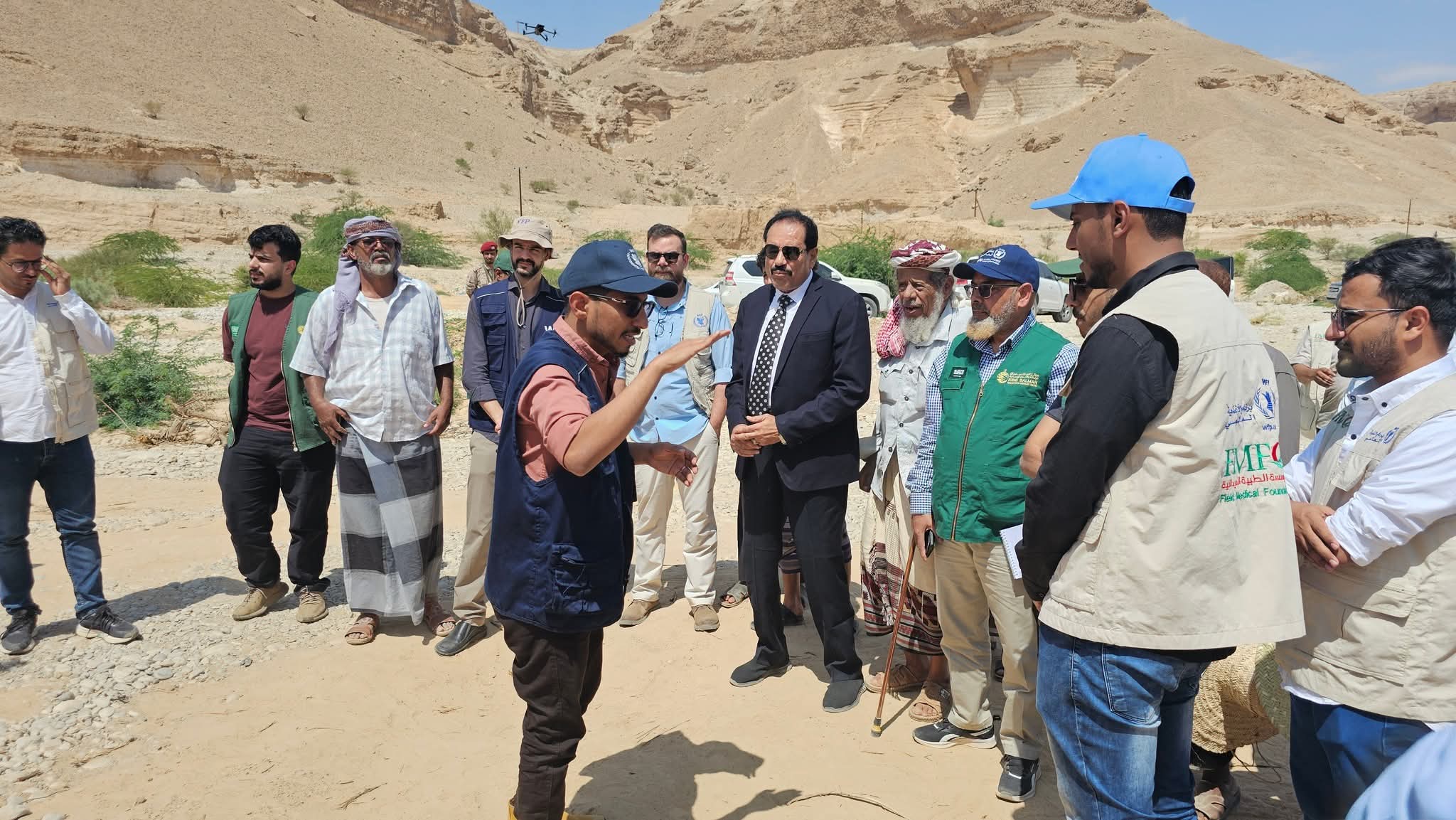 زار وفد من مركز الملك سلمان للإغاثة والأعمال الإنسانية ومكتب برنامج الغذاء العالمي (WFP) بحضرموت، يرافقه الفريق الميداني من المؤسسة الطبية الميدانية (FMF)، صباح اليوم الأربعاء، مديرية ساه ، وذلك للإطلاع على سير المشاريع المنفذة في المديرية ضمن تدخلات مشروع “من الغذاء إلى الصمود” الممول من مركز الملك سلمان، والذي ينفذه برنامج الأغذية العالمي وشريكه المحلي مؤسسة FMF في القطاع الزراعي واستصلاح الأراضي وإقامة الحواجز المائية وإدخال التقنيات الحديثة لتعزيز صمود المزارعين في ظل التغيرات المناخية.