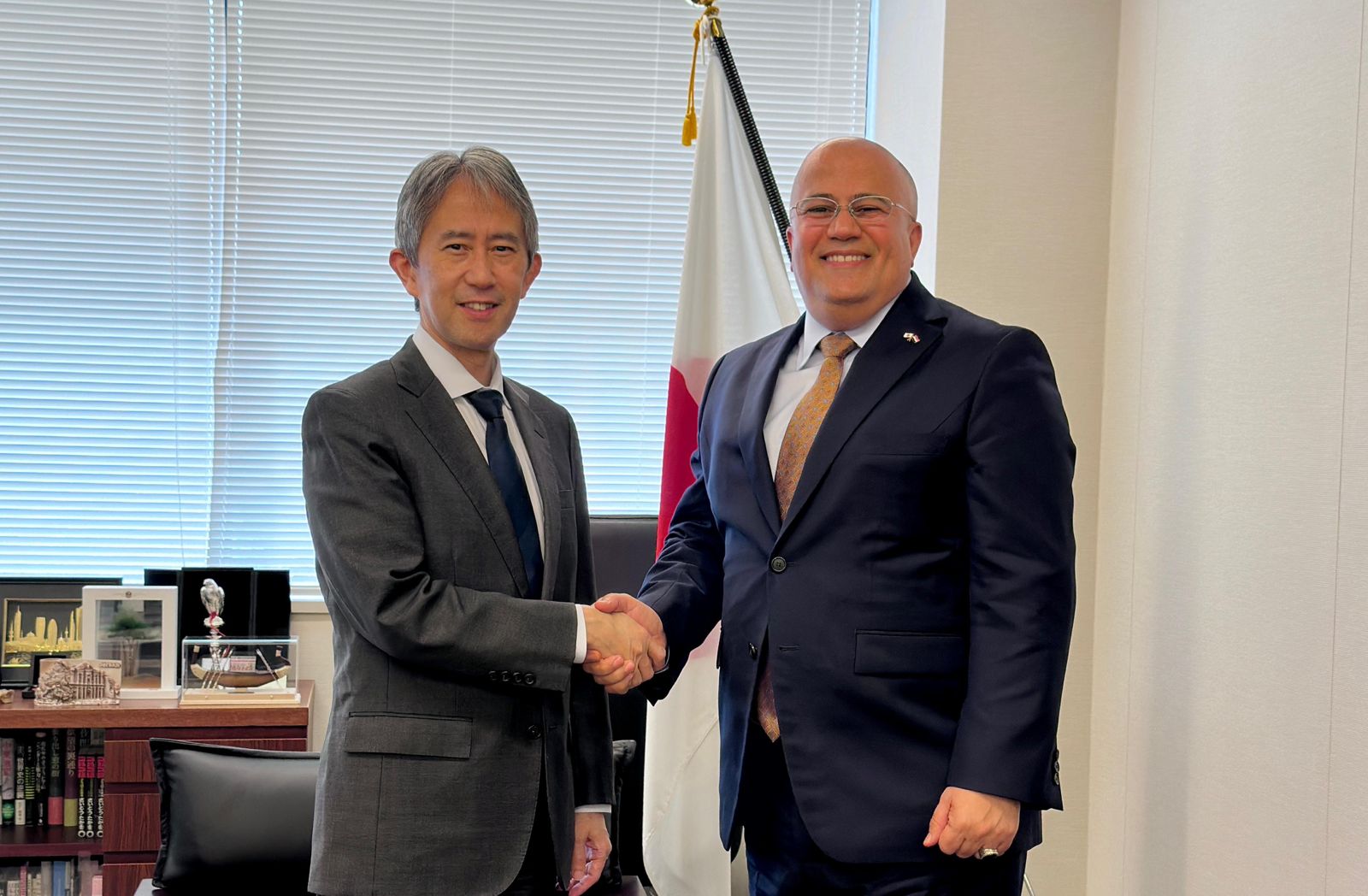 بحث سفير اليمن لدى اليابان، عادل السنيني، اليوم، رئيس دائرة الشرق الاوسط وافريقيا في وزارة الخارجية اليابانية، كيئيتشي ايواموتو، تعزيز العلاقات الثنائية، وتوسيع مجالات الدعم المقدمة من الحكومة اليابانية الصديقة.