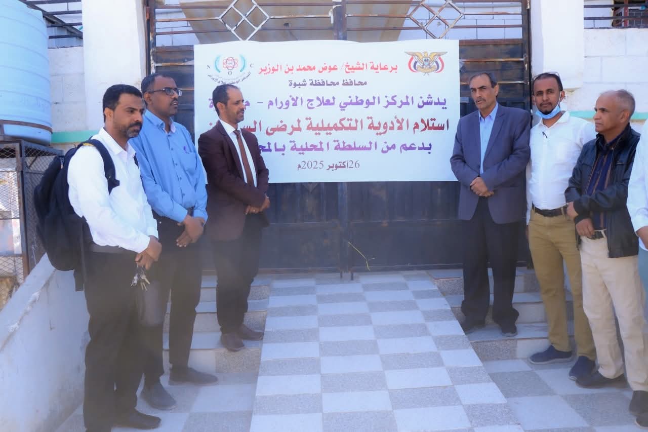 ويأتي هذا الدعم تجسيدًا لاهتمام قيادة السلطة المحلية في شبوة بالقطاع الصحي، وحرصها على تعزيز خدمات الرعاية الطبية وتخفيف معاناة المرضى، ولا سيما مرضى الأورام الذين يحتاجون إلى رعاية مستمرة ودعم إنساني متواصل.