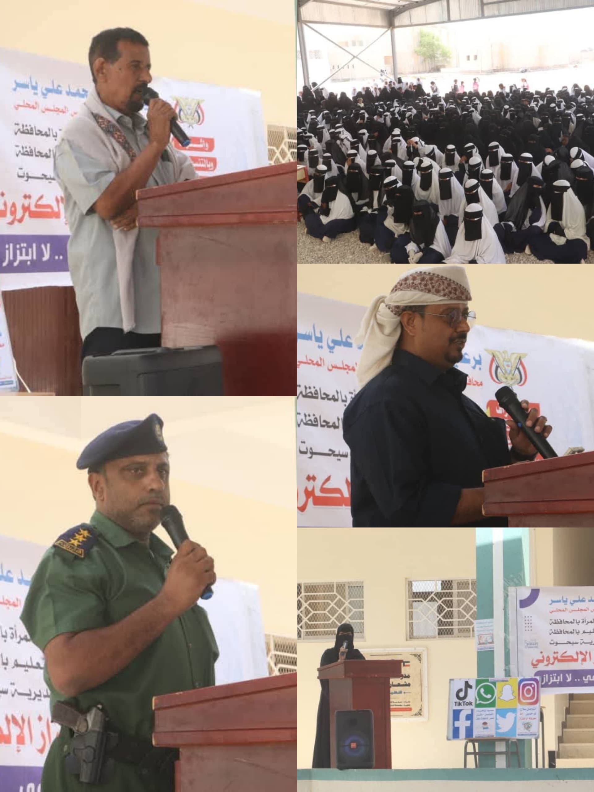 كما تحدث مدير مكتب التربية والتعليم بسيحوت الأستاذ عقيل المقدي، ومدير إدارة الأمن والشرطة النقيب محمد سعد هضمان، حول التحديات الأمنية المرتبطة بالابتزاز الإلكتروني، مقدمين نصائح وإرشادات للطالبات، فيما أعلن مدير الأمن تخصيص رقمٍ خاص للتواصل والإبلاغ عن أي حالات ابتزاز إلكتروني حفاظًا على سلامة المجتمع.