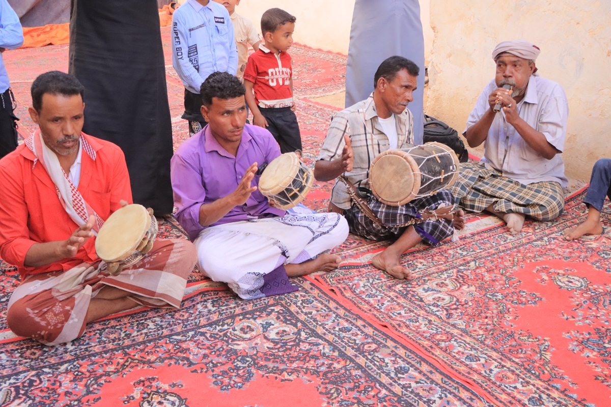 وانطلقت مراسيم زواج الابناء من ظهر اليوم الخميس بإقامة الغسة للعريس الشاب يحيى كرامة بن زيدان بمشاركة الاهل والاقارب والأصدقاء وأقيمت مراسيم رقصة الحناء للعريس والرقص الى جانبه من قبل والده واعمامه واقاربه وأصدقائه وزملائه مصحوبة بإيقاعات شرحية من التراث الشعبي أثناء الحناء وخلال مراقصة العريس .