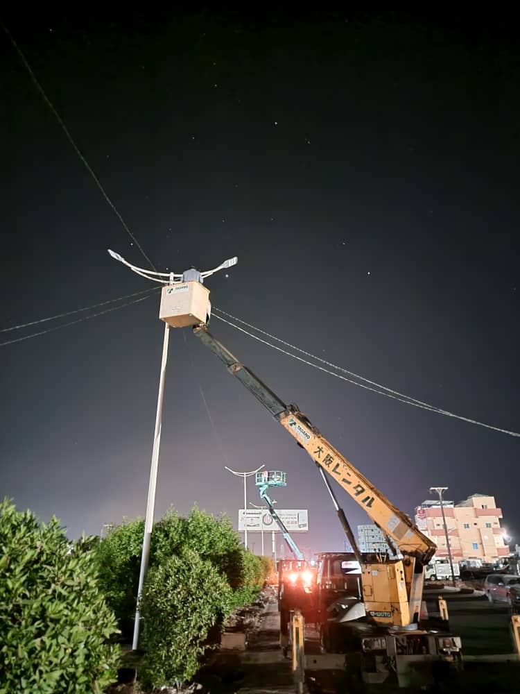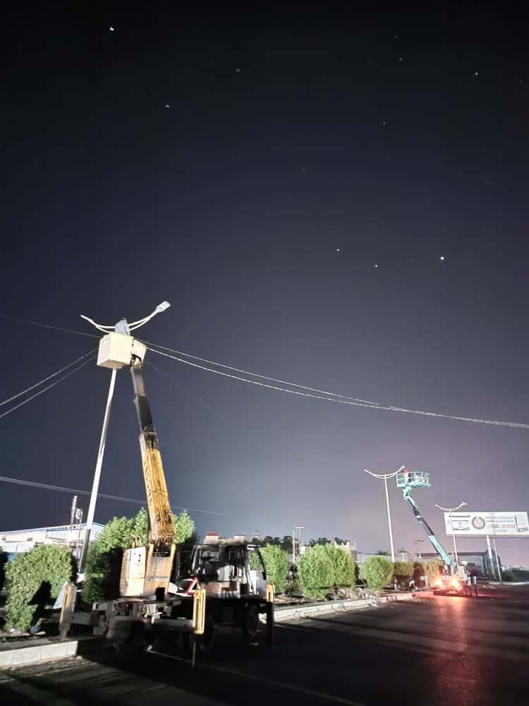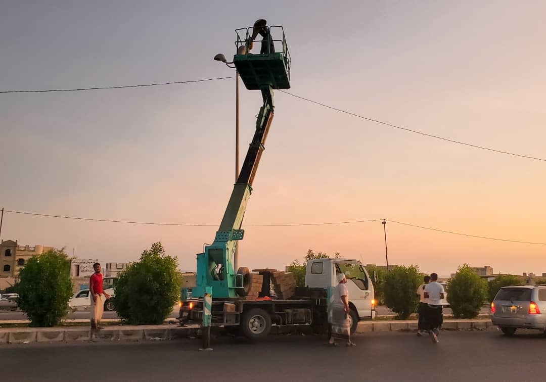 يواصل الفريق الهندسي بمكتب الأشغال العامة والطرق بمديرية الشحر بإشراف من السلطة المحلية بالمديرية بإعادة تأهيل وصيانة الكشافات الضوئية والوصلات الكهربائية في الشارع الرئيسي الدولي بالمدخل الغربي لمدينة الشحر.