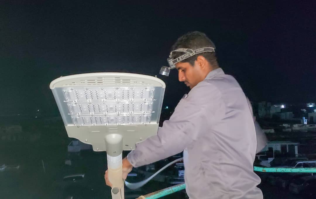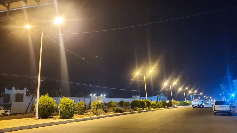 حيث يجري استبدال الكشافات الضوئية القديمة من نوع الصوديوم عالية الضغط بأخرى حديثة تعتمد على تقنية LED عالية الكثافة والتي توفر إضاءة أفضل مع ترشيد استهلاك الطاقة الكهربائية وذلك ضمن إطار خطة تعزيز كفاءة الانارة وتحسين المشهد الحضري للمدخل الغربي لمدينة الشحر.