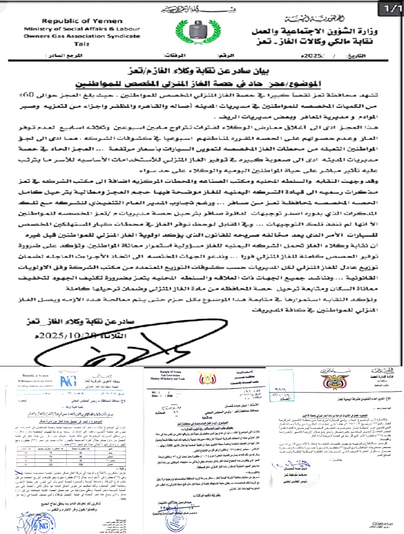 من جانبه، رفع مدير مكتب الصناعة والتجارة عبدالرحمن القليعة، مذكرة مماثلة إلى المحافظ، أوضح فيها أن الكمية المخصصة لمحطة الأخوين خلال الأشهر الثلاثة الماضية بلغت 175 مقطورة، إلا أن ما تم ترحيله فعلياً لا يتجاوز 102 مقطورة، بعجز يصل إلى 73 مقطورة، ما تسبب في تفاقم أزمة الغاز المنزلي وخلق اختناقات متصاعدة.