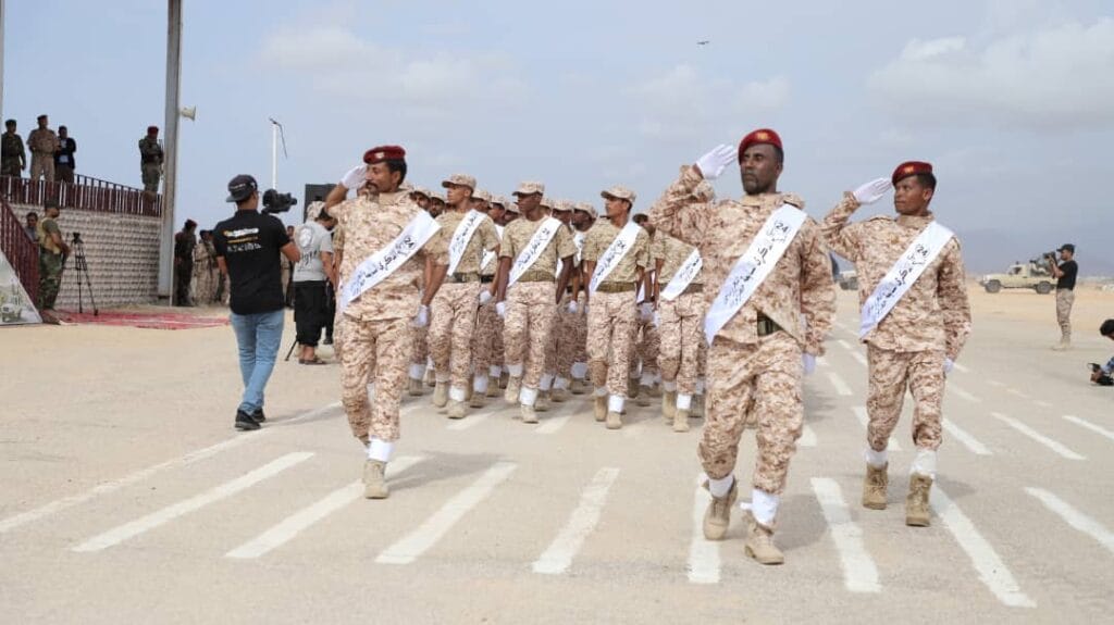 ونظمت قيادة المنطقة العسكرية الثانية اليوم بميدان لواء الريان بالمكلا، عرضًا عسكريًا برعاية رئيس مجلس القيادة الرئاسي الدكتور رشاد محمد العليمي، بمناسبة الذكرى السابعة لتحرير ساحل حضرموت من عناصر تنظيم القاعدة، وبحضور وزيري التربية والتعليم طارق سالم العكبري، والكهرباء والطاقة المهندس مانع يسلم بن يمين، واعضاء مجلس الشورى.