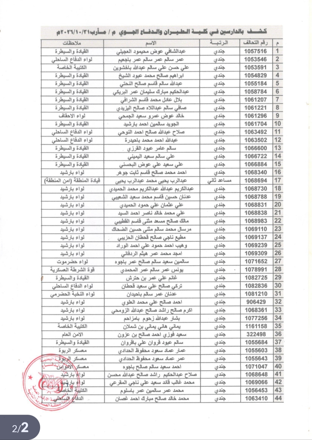 وتثير هذه الوثيقة تساؤلات حول استمرار نهب حقوق حضرموت في التمثيل العسكري حتى في مقاعد الدراسة، وسط غطاء رسمي من قيادة المنطقة العسكرية الثانية.