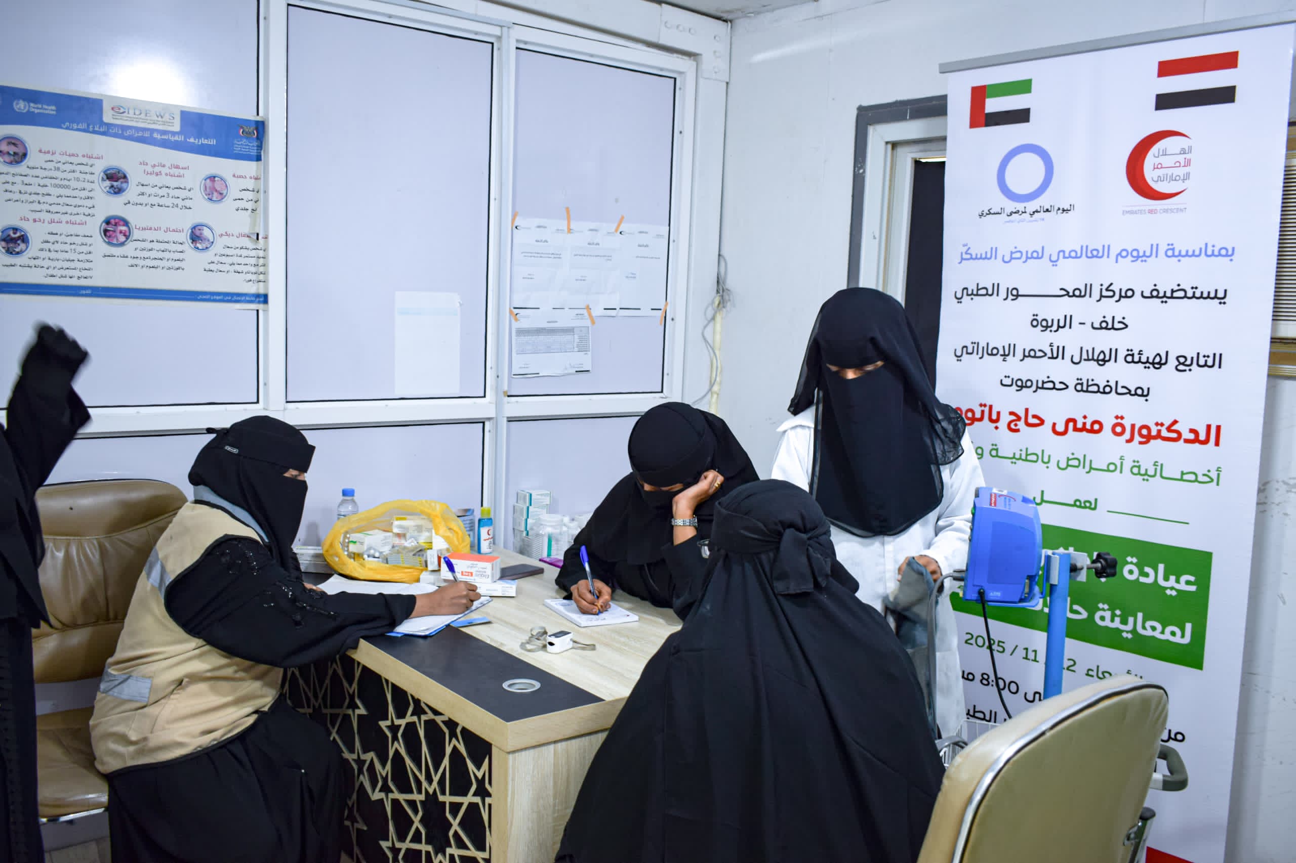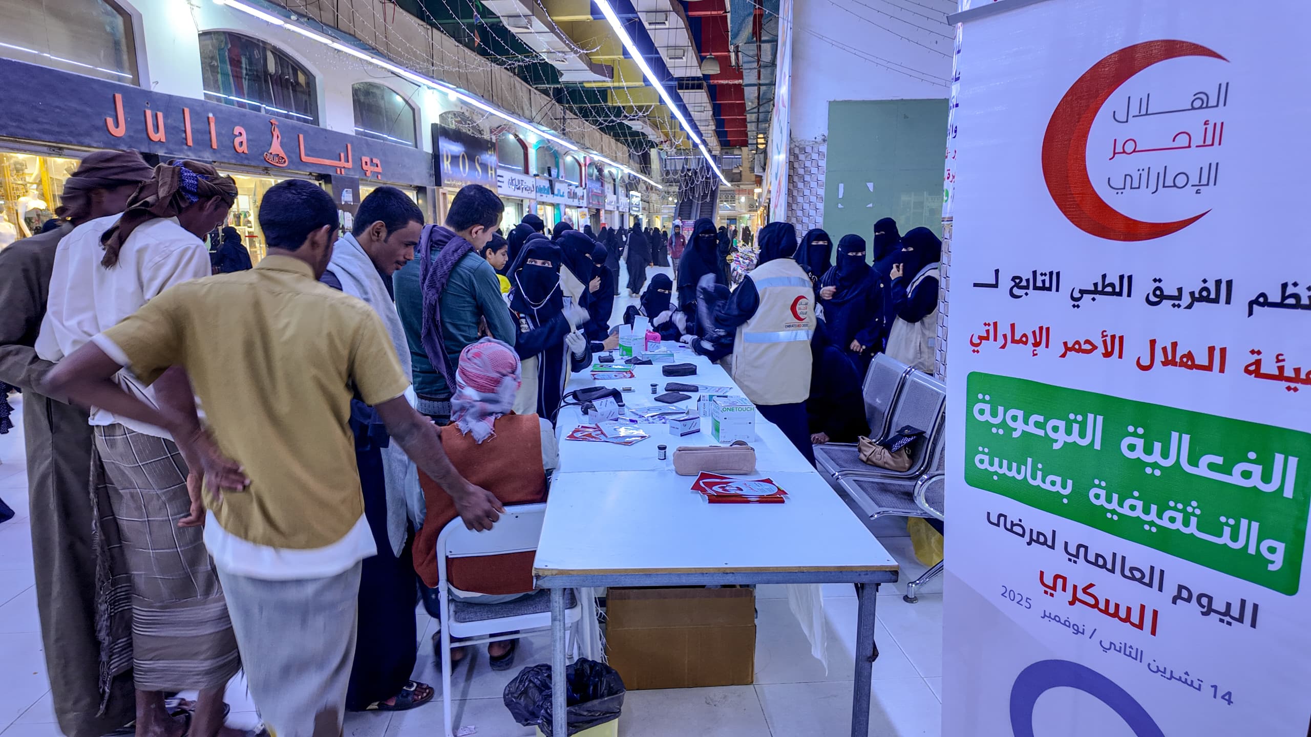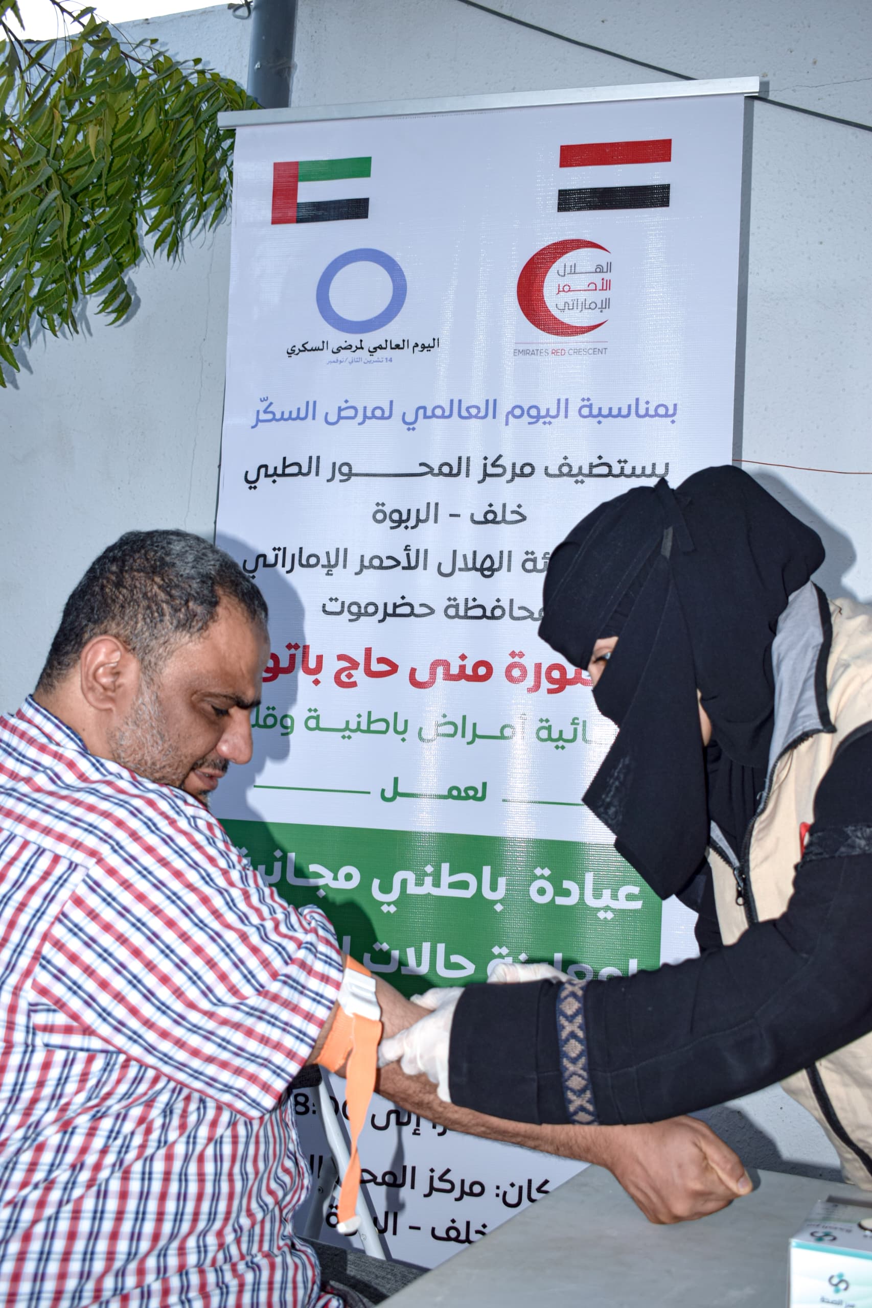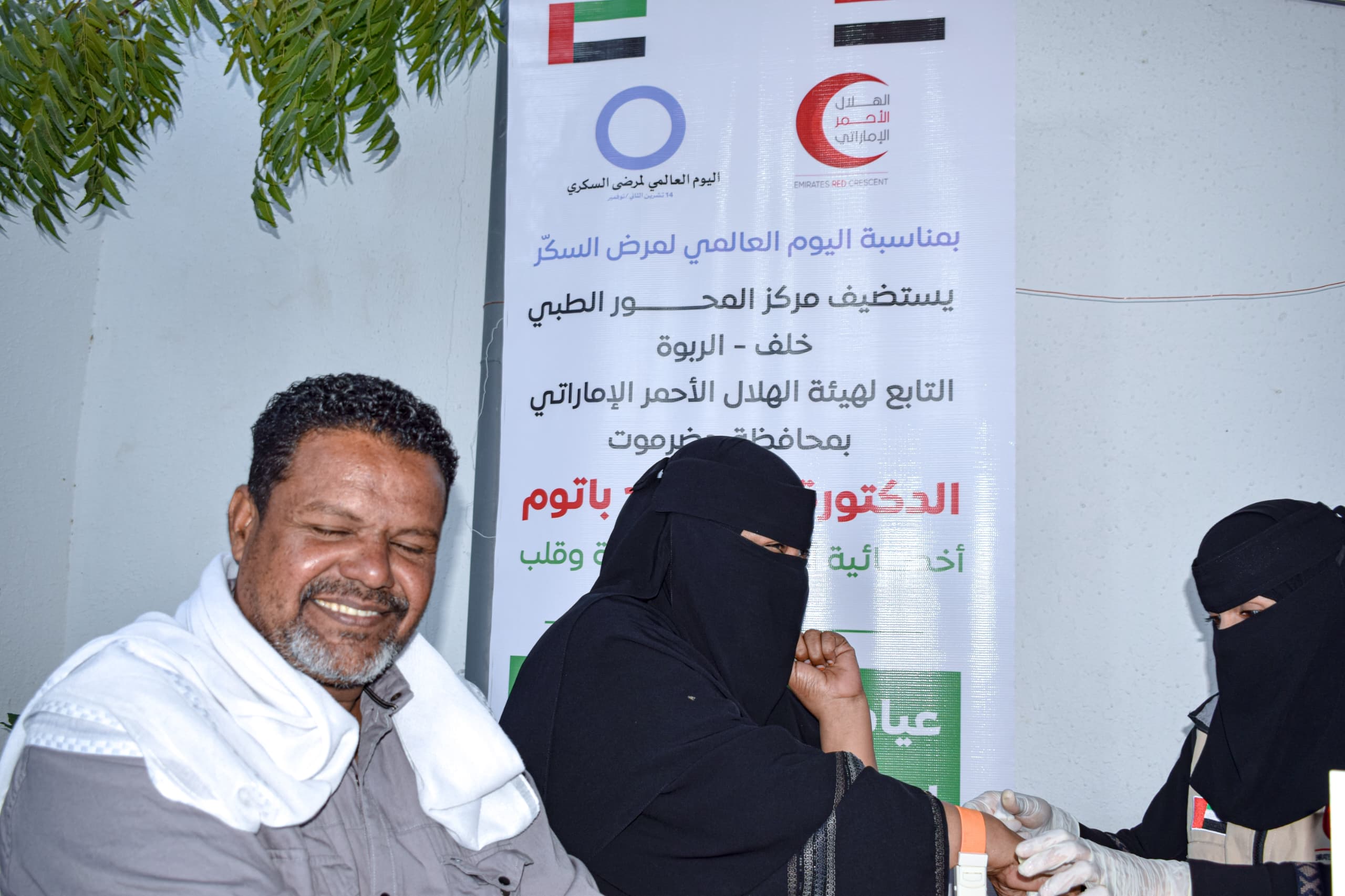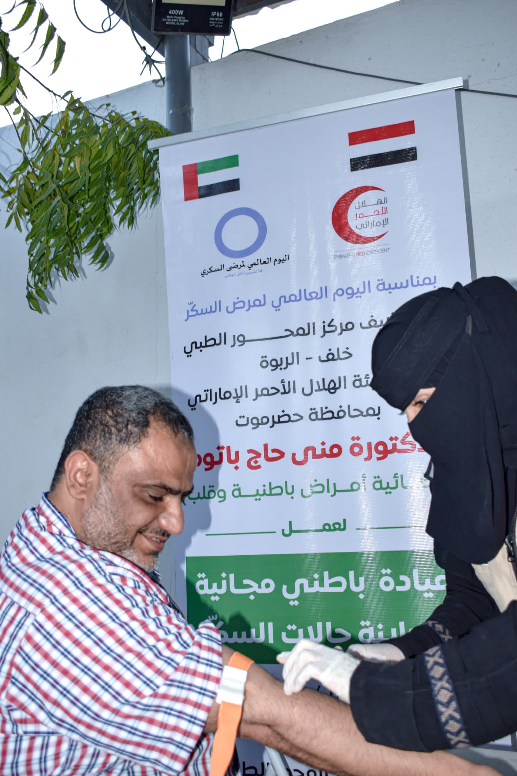 ضمن مبادراتها الإنسانية المستمرة في محافظة حضرموت، نظم الفريق الطبي التابع لهيئة الهلال الأحمر الإماراتي فعالية توعوية وطبية بمناسبة اليوم العالمي لمرض السكري، بهدف رفع مستوى الوعي الصحي وتعزيز مفاهيم الوقاية من المرض في أوساط المجتمع.