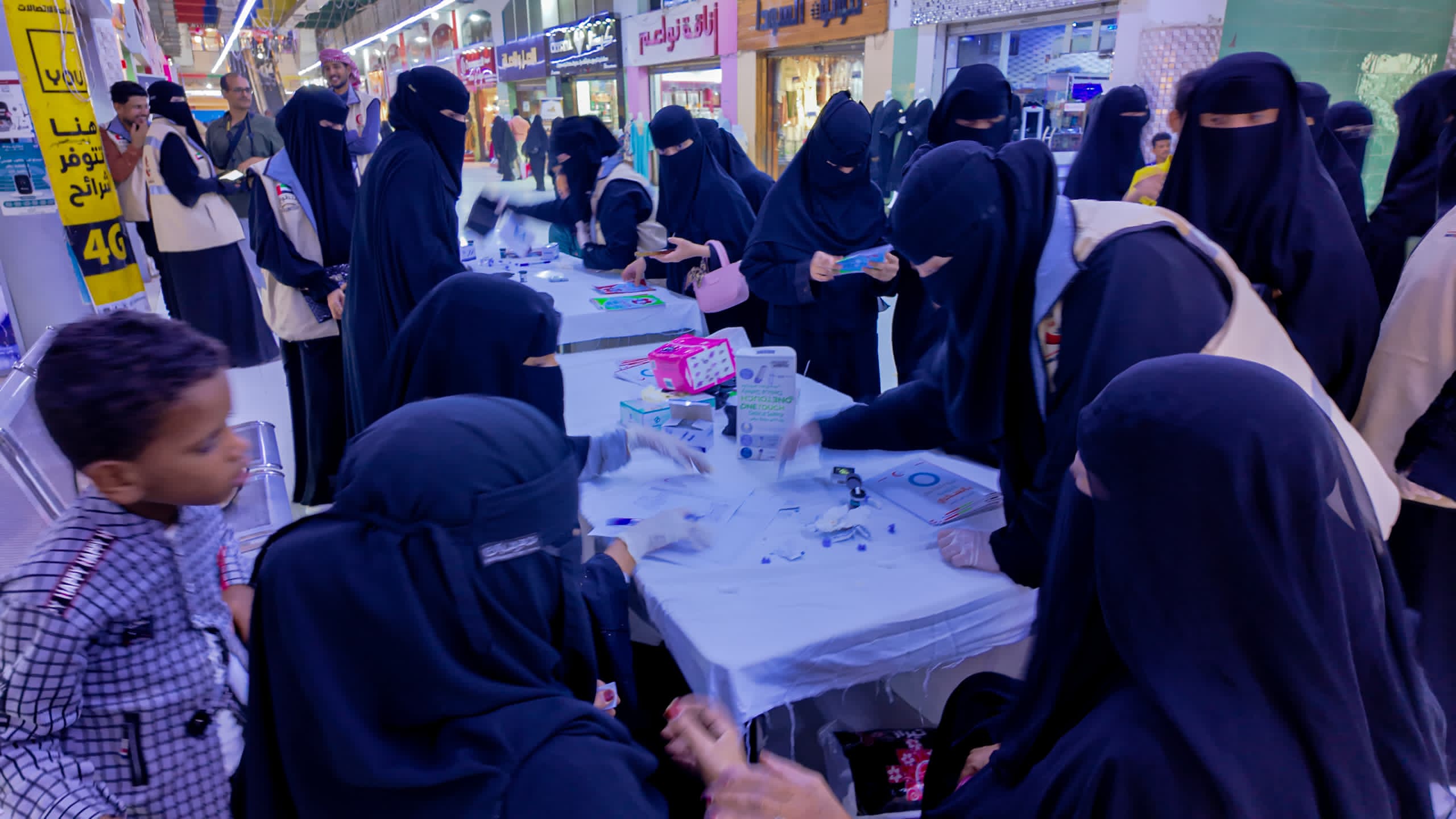 وفي إطار الفعالية، نظم الفريق الطبي التابع للهيئة، عصر اليوم الخميس حملة توعوية وتثقيفية في مركز مكلا مول التجاري بمدينة المكلا، تضمنت فحوصات مجانية لمستوى السكر في الدم، واستشارات صحية وتغذوية، إلى جانب توعية الزوار بأساليب الوقاية والعلاج المبكر للحد من مضاعفات المرض.