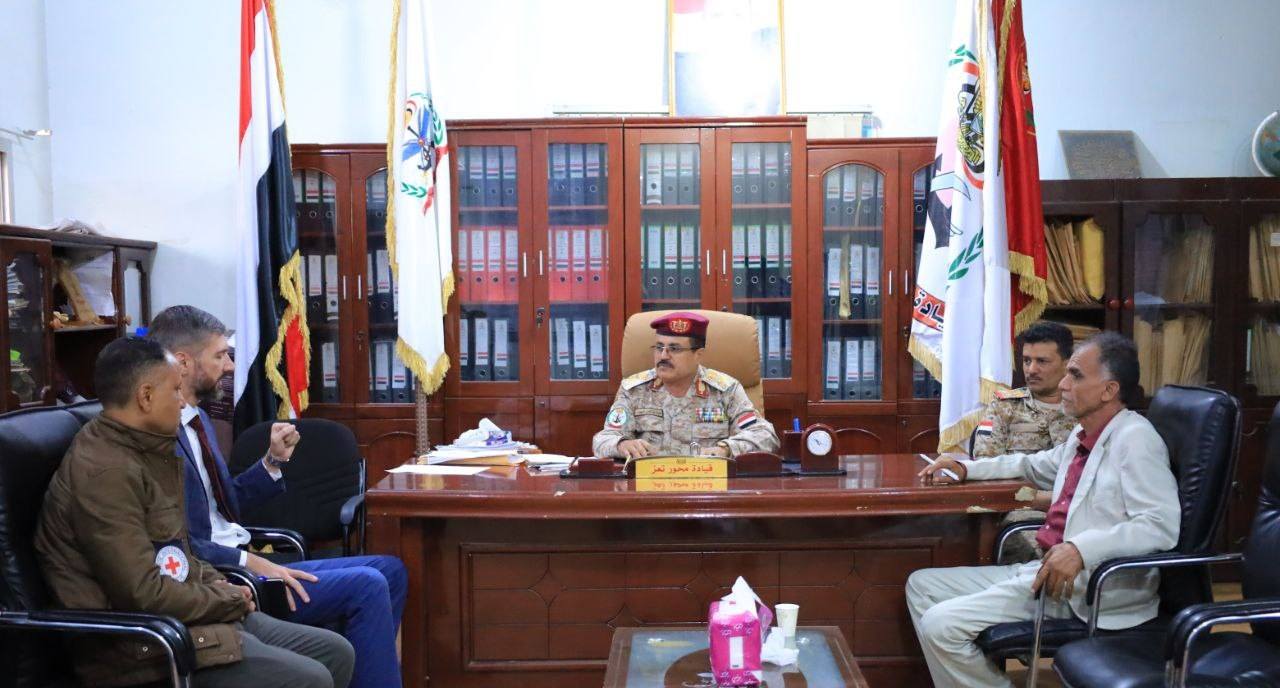 ورحب اللواء المجيدي، بمدير مكتب الصليب الأحمر..معرباً عن تقديره لجهود المنظمة في الجوانب الإنسانية والقانونية..مؤكداً حرص قيادة المحور على التعاون وتقديم التسهيلات لمهام اللجنة في المحافظة.