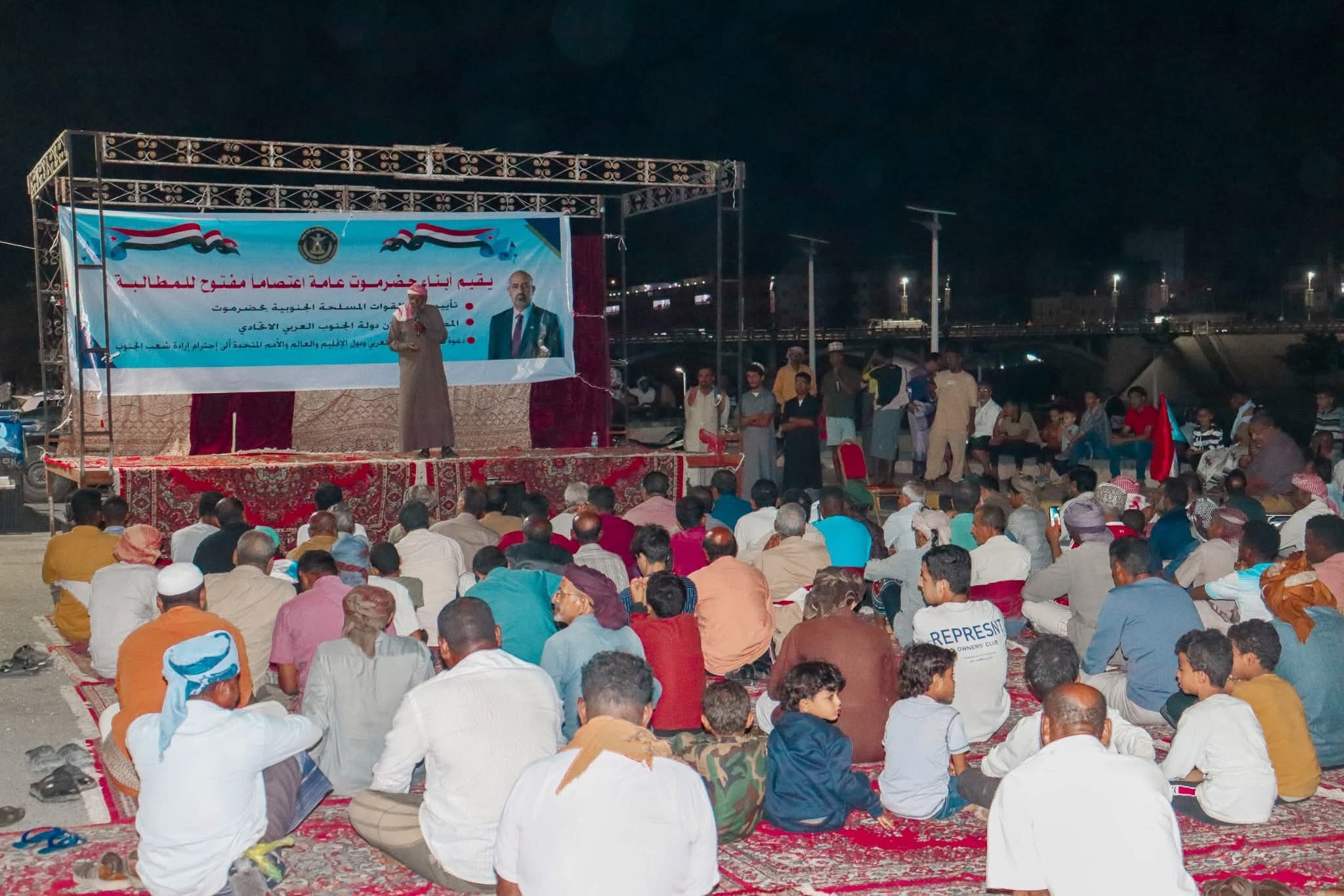 وألقى الأستاذ محمد صالح باتيس، القائم بأعمال رئيس الهيئة التنفيذية للقيادة المحلية للمجلس الانتقالي الجنوبي بمحافظة حضرموت، كلمة رحّب فيها بالحاضرين، مؤكدًا أن صمود أبناء حضرموت وتلاحمهم هو الركيزة الأساسية لحماية الأرض وتحقيق تطلعاتهم الوطنية، مشدّدًا على أن الاعتصام المفتوح يمثل صوت شعب الجنوب وإرادته الجامعة، داعيًا الجميع إلى تعزيز الوعي المجتمعي والتمسّك بالثبات حتى تحقيق كامل أهدافهم.