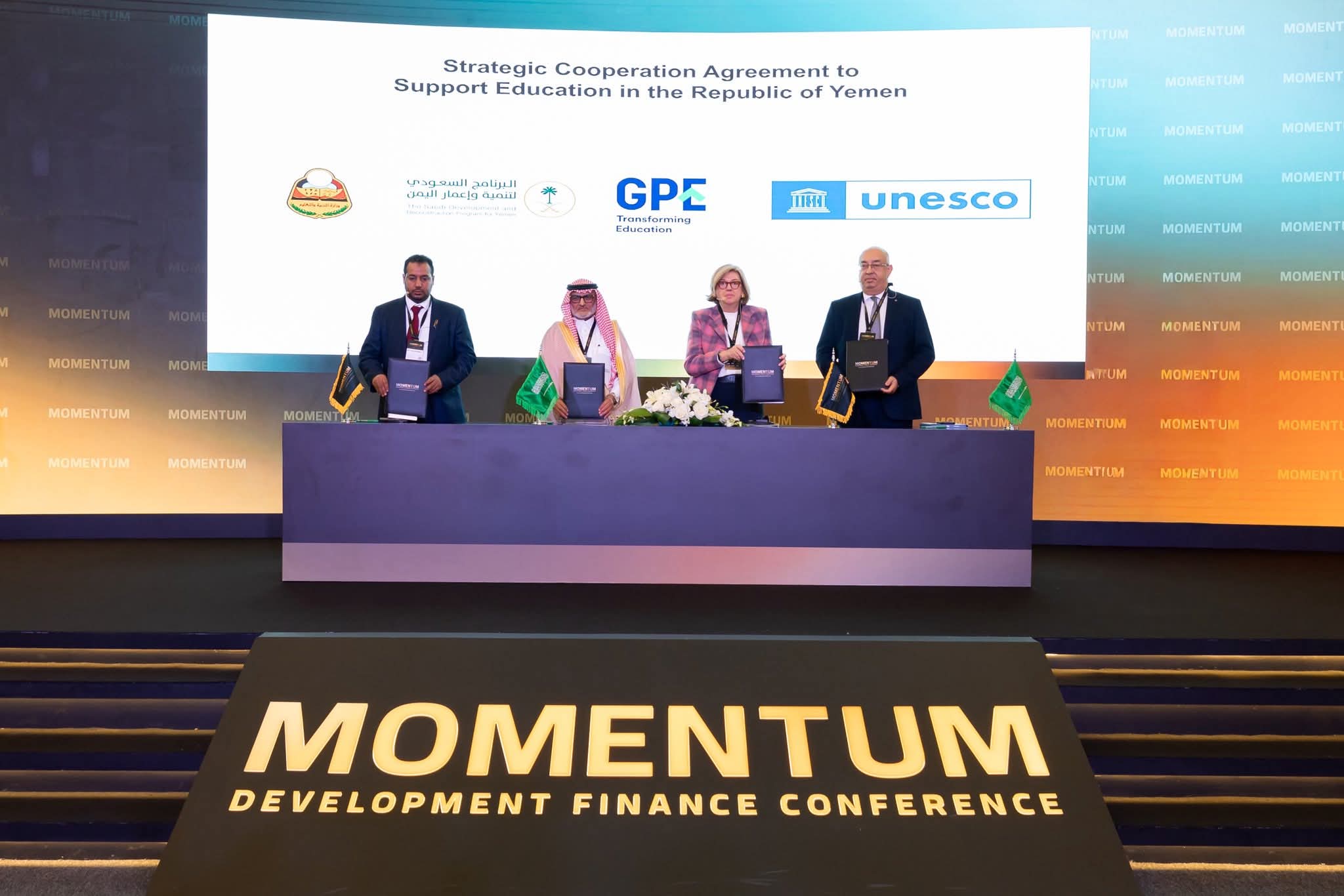 وبموجب الاتفاقية التي وقعها وزير التربية والتعليم، طارق العكبري، خلال مؤتمر التمويل التنموي المنعقد في مركز الملك عبدالعزيز الدولي للمؤتمرات بالعاصمة السعودية الرياض، على تعزيز فرص الوصول إلى تعليم آمن وشامل، وتمكين الفتيات، وتحسين جودة التعليم عبر تأهيل المعلمين، ورفع قدراتهم مع التركيز على المناطق الأكثر احتياجًا في اليمن.