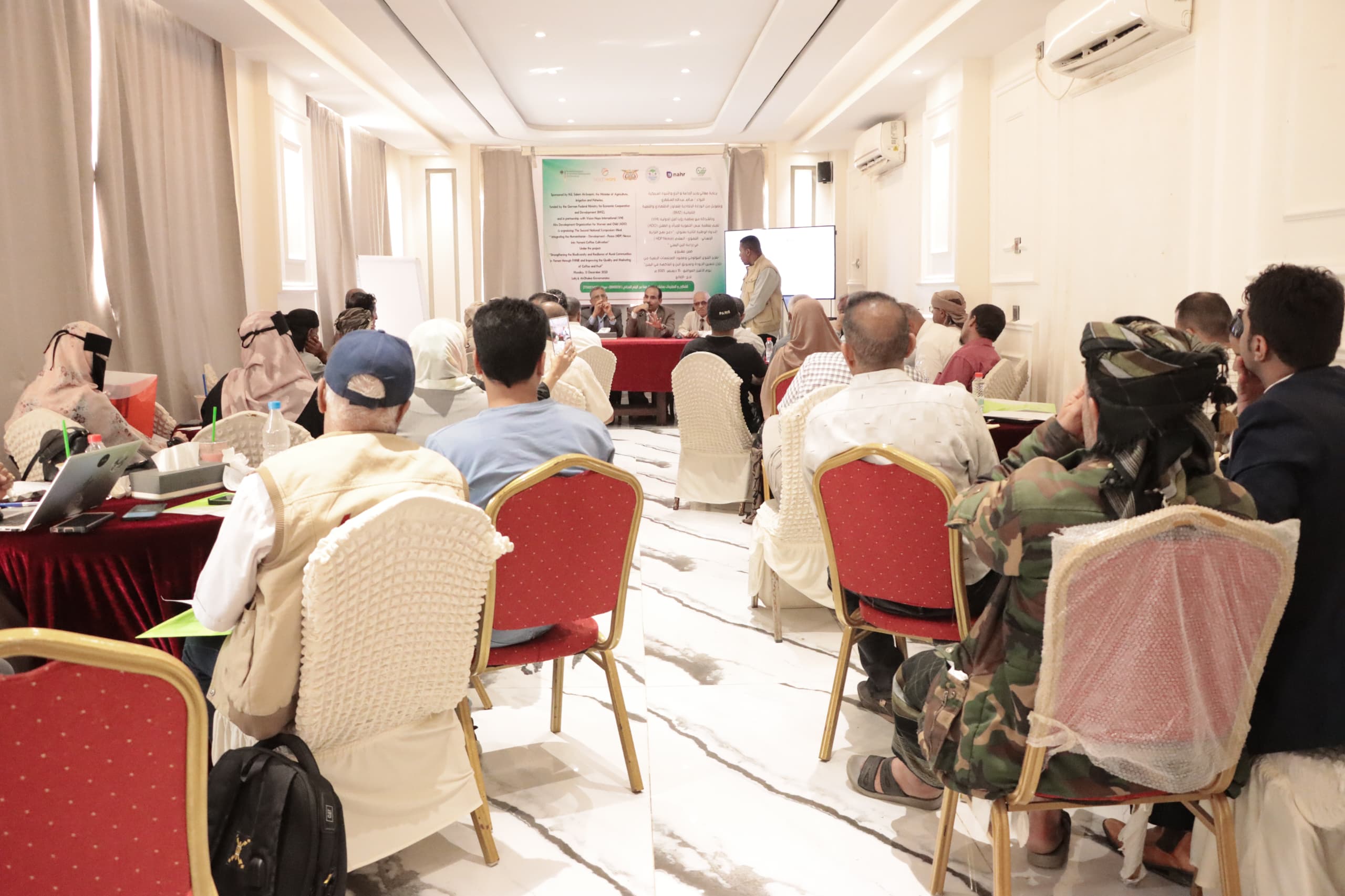 تحت رعاية معالي وزير الزراعة والري والثروة السمكية اللواء سالم عبدالله السقطري انطلقت صباح اليوم في العاصمة عدن الندوة الوطنية الثانية بعنوان دمج نهج الترابط الثلاثي (الإنساني–التنموي–السلام) في تطوير زراعة البن اليمني” والتي نظّمتها منظمة عبس التنموية،بالتعاون مع وزارة الزراعة والري والثروة السمكية وبالشراكة مع منظمة رؤيا أمل الدولية بتمويل من الوزارة الاتحادية للتعاون الاقتصادي والتنمية الألمانية (BMZ) وذلك ضمن مشروع “تعزيز التنوع البيولوجي وصمود المجتمعات الريفية من خلال تحسين الجودة وتسويق البن والفاكهة في اليمن لحج الضالع أبين بحضور عدد من المسؤولين وممثلي منظمات دولية ومحلية.