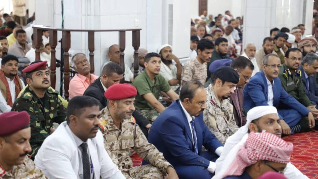 وأدى محافظ حضرموت ورئيس هيئة الأركان العامة ووكيل أول وزارة الداخلية وقائد قوات الدعم والإسناد للتحالف العربي والأمين العام للمجلس المحلي بالمحافظة والوكلاء وقائد المنطقة العسكرية الثانية صلاة الجمعة بجامع مسجد عُمر بالمكلا.