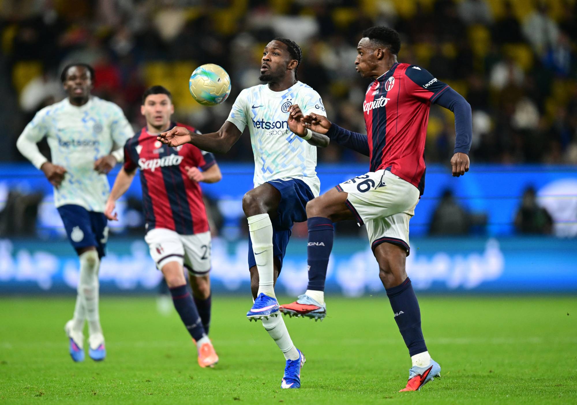 تأهل فريق بولونيا الى نهائي كأس السوبر الإيطالي، بفوزه على إنتر ميلان، بركلات الترجيح بثلاثة اهداف مقابل هدفين في المباراة التي جمعتهما على ملعب الأول بارك بالعاصمة السعودية الرياض.