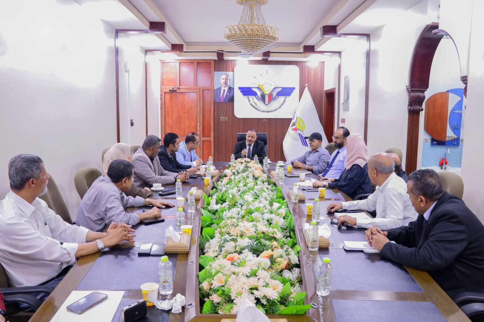 ترأس معالي وزير النقل الدكتور عبدالسلام صالح حُميد، اليوم، اجتماعاً موسعاً في الهيئة العامة للطيران المدني والأرصاد، بالعاصمة عدن، لمناقشة ومتابعة خطط المشاريع المنفذة وقيد التنفيذ الخاصة بالهيئة، والوقوف أمام مستوى الإنجاز والصعوبات التي تواجه سير العمل.