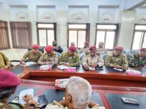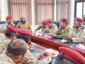 حيث ترأس الاجتماع رئيس أركان حرب المنطقة العسكرية الثانية، العميد سالم أحمد باسلوم، ومعه العقيد فهد سالم بامؤمن، قائد الفرقة الثانية من قوات درع الوطن، وشارك في الاجتماع عدد من القادة العسكريين من الطرفين.