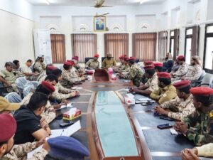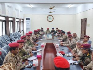 عقدت قيادة المنطقة العسكرية الثانية، مع قوات درع الوطن، مساء اليوم بالمكلا، اجتماعاً استثنائياً لتنسيق الجهود العسكرية والعملياتية بين القوات التابعة للمنطقة العسكرية الثانية بكافة ألويتها ووحداتها، وقوات درع الوطن بكافة تشكيلاتها المتواجدة بساحل وهضبة حضرموت.